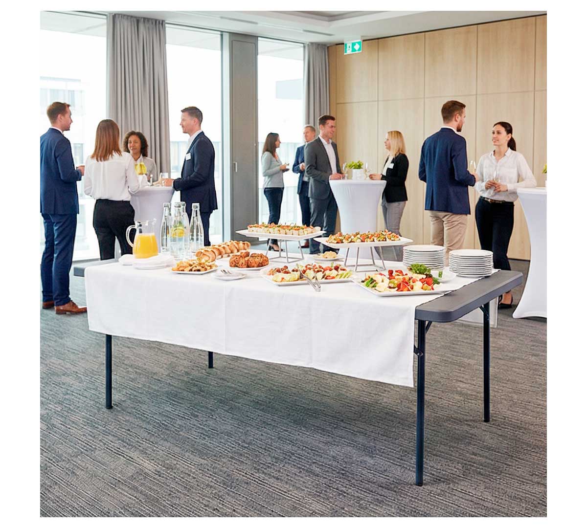 La Mesa Rectangular Serie New Classic Plegable Imperial200 de Zown es una solución robusta y modular para eventos profesionales, ideal para montajes imperiales, banquetes y celebraciones donde se requiere amplitud, resistencia y rapidez de montaje.