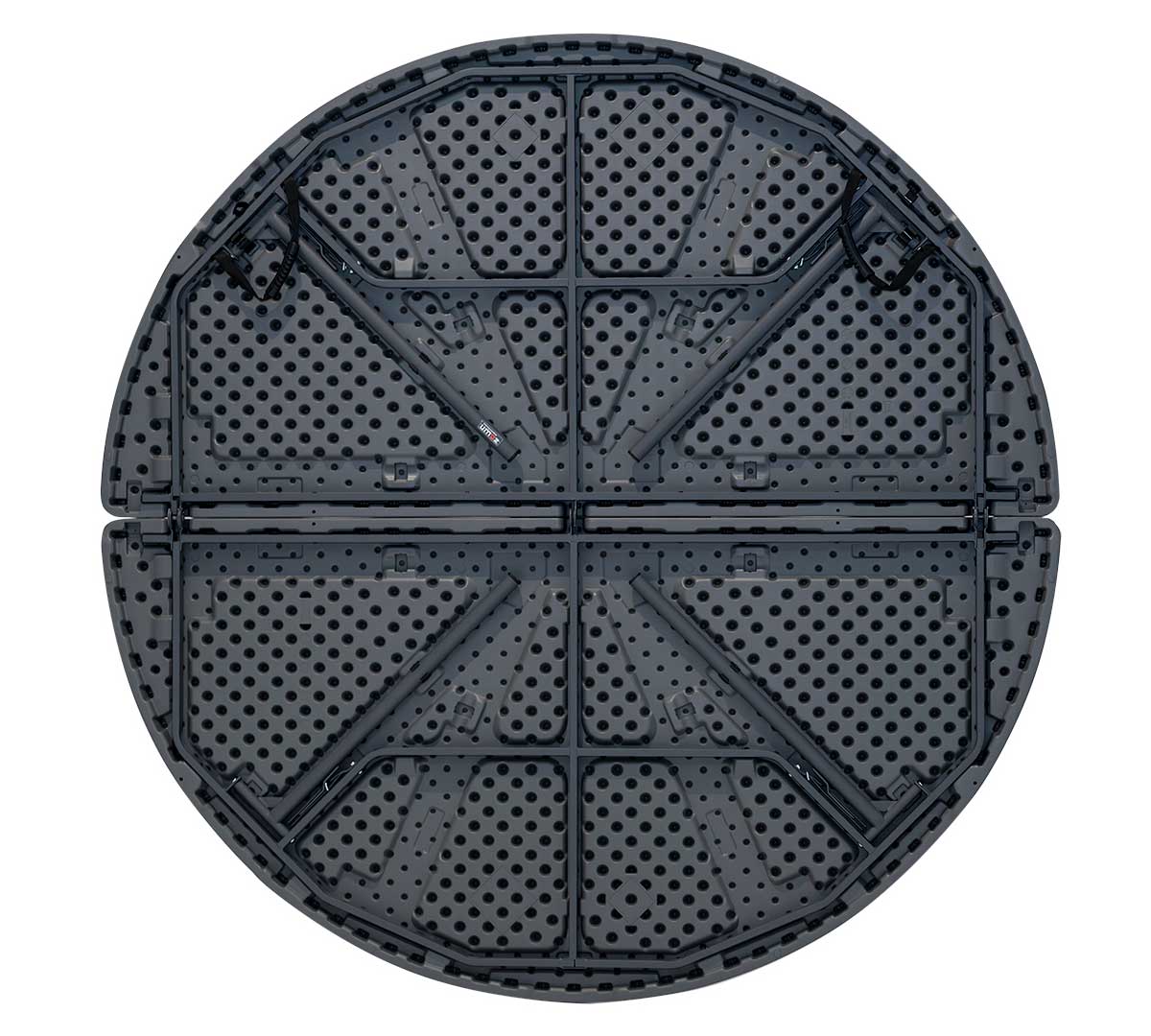 Este tipo de mesa redonda, también conocida como mesa de catering, destaca por su facilidad de transporte y almacenamiento, así como por su elevada capacidad de carga y estabilidad.