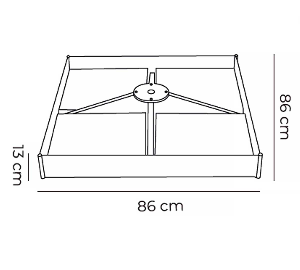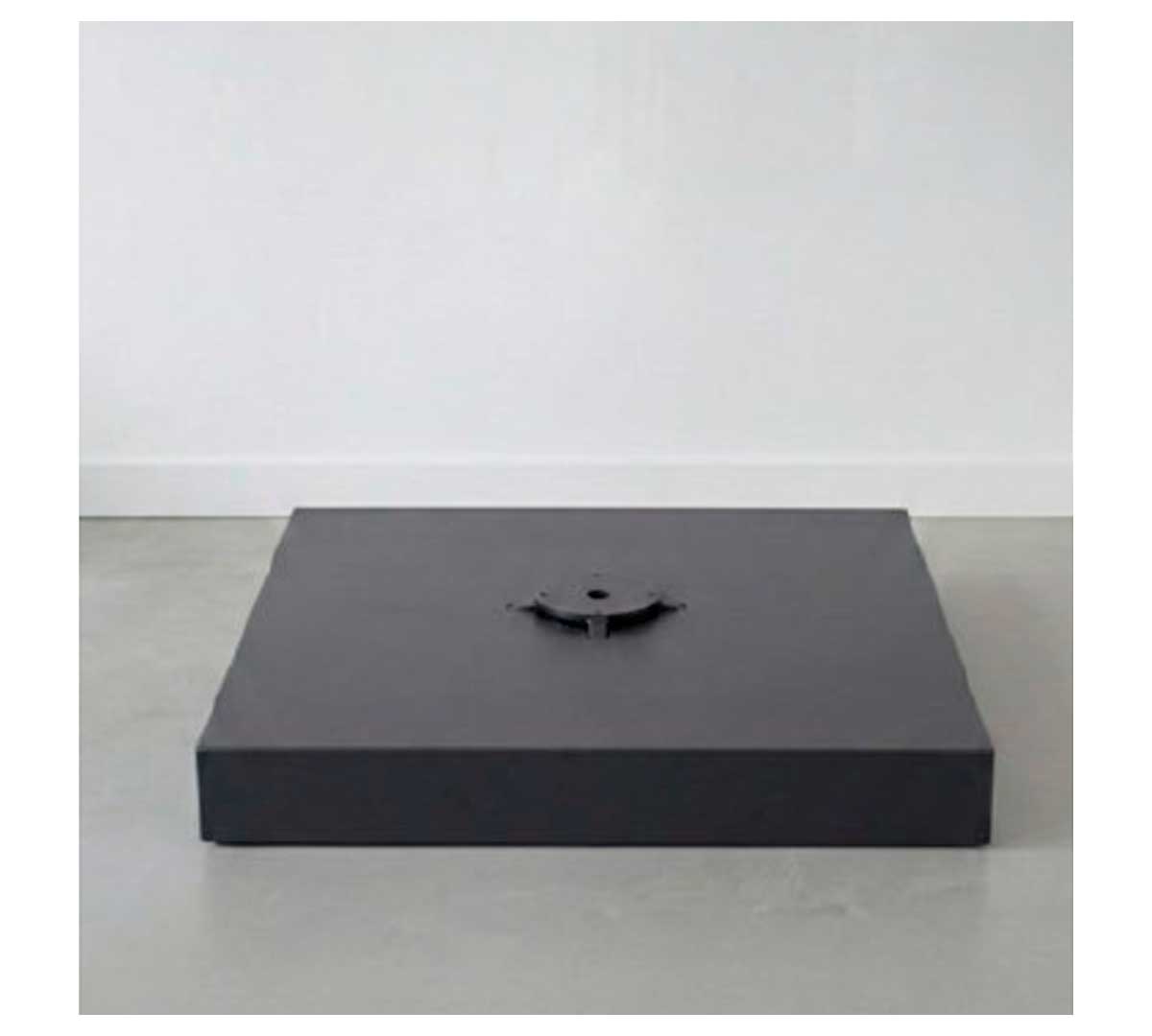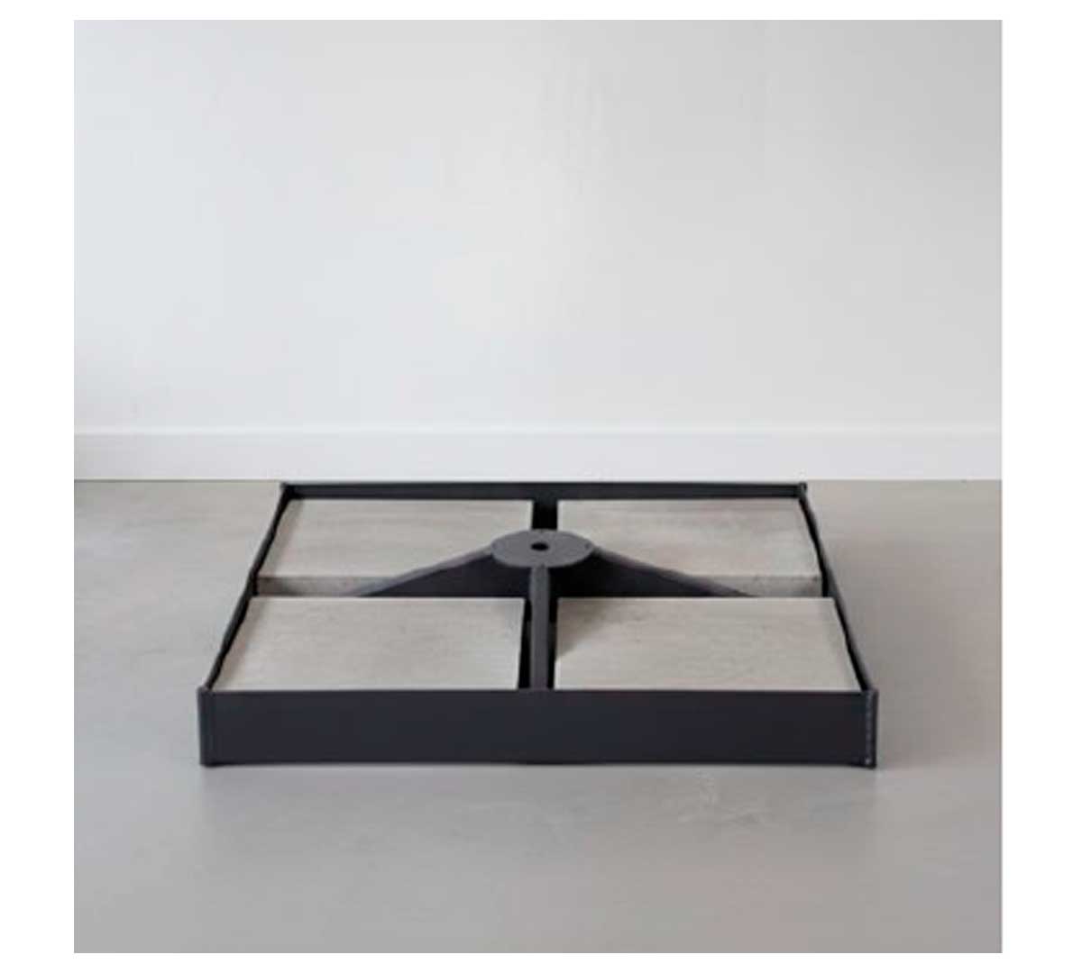 Base metálica para parasol de gran estabilidad. Fabricada en acero con recubrimiento en polvo y acabado en color negro. Diseñada para alojar losas de cemento y ofrecer una sujeción robusta en instalaciones exteriores exigentes. Compatible con el parasol lateral doble de Conva.