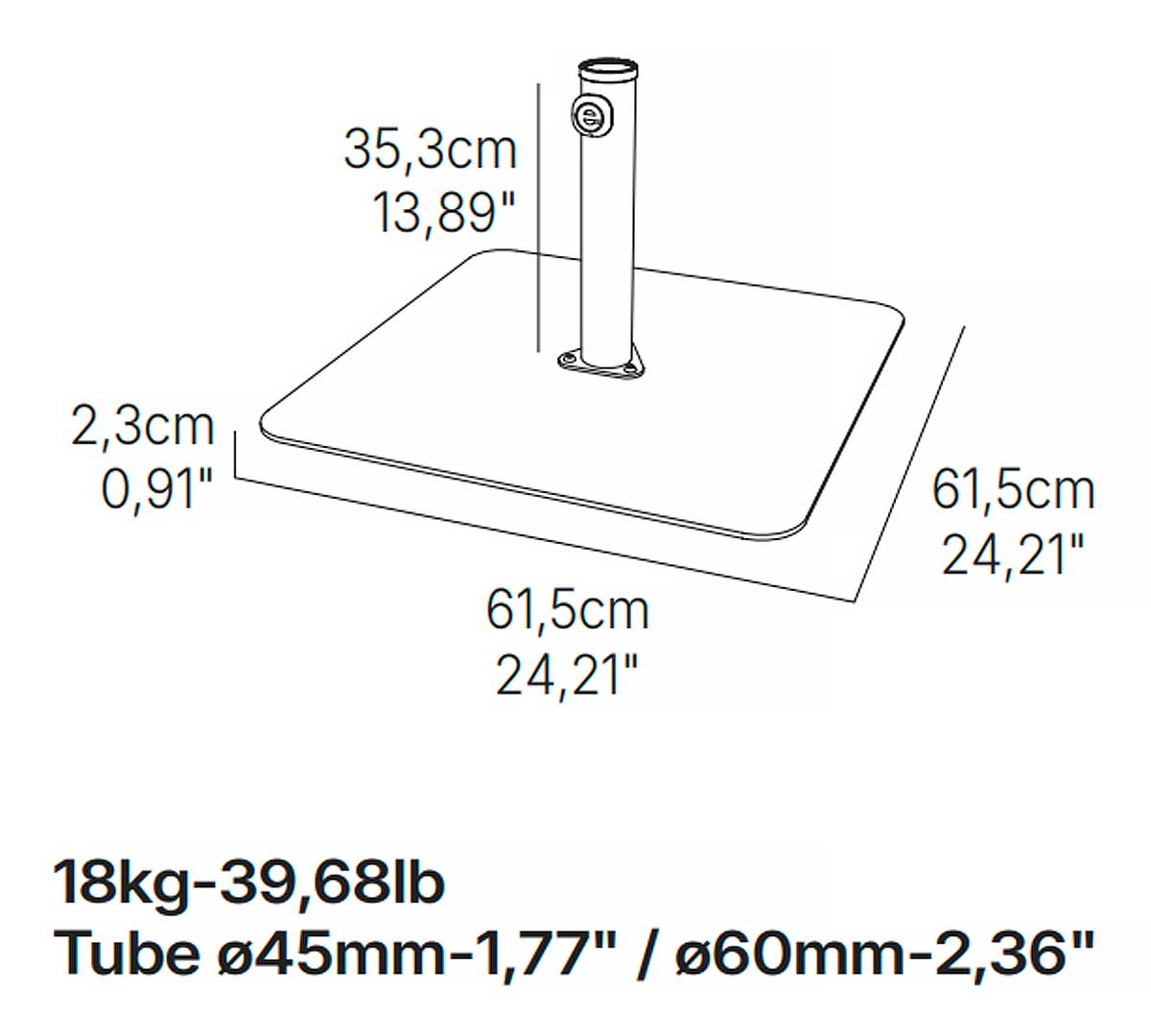 Ezpeleta Base Cuadrada Hierro con Cruceta y Tacos Loop 18 kg Blanco / Diámetro Tubo 60 mm | ||