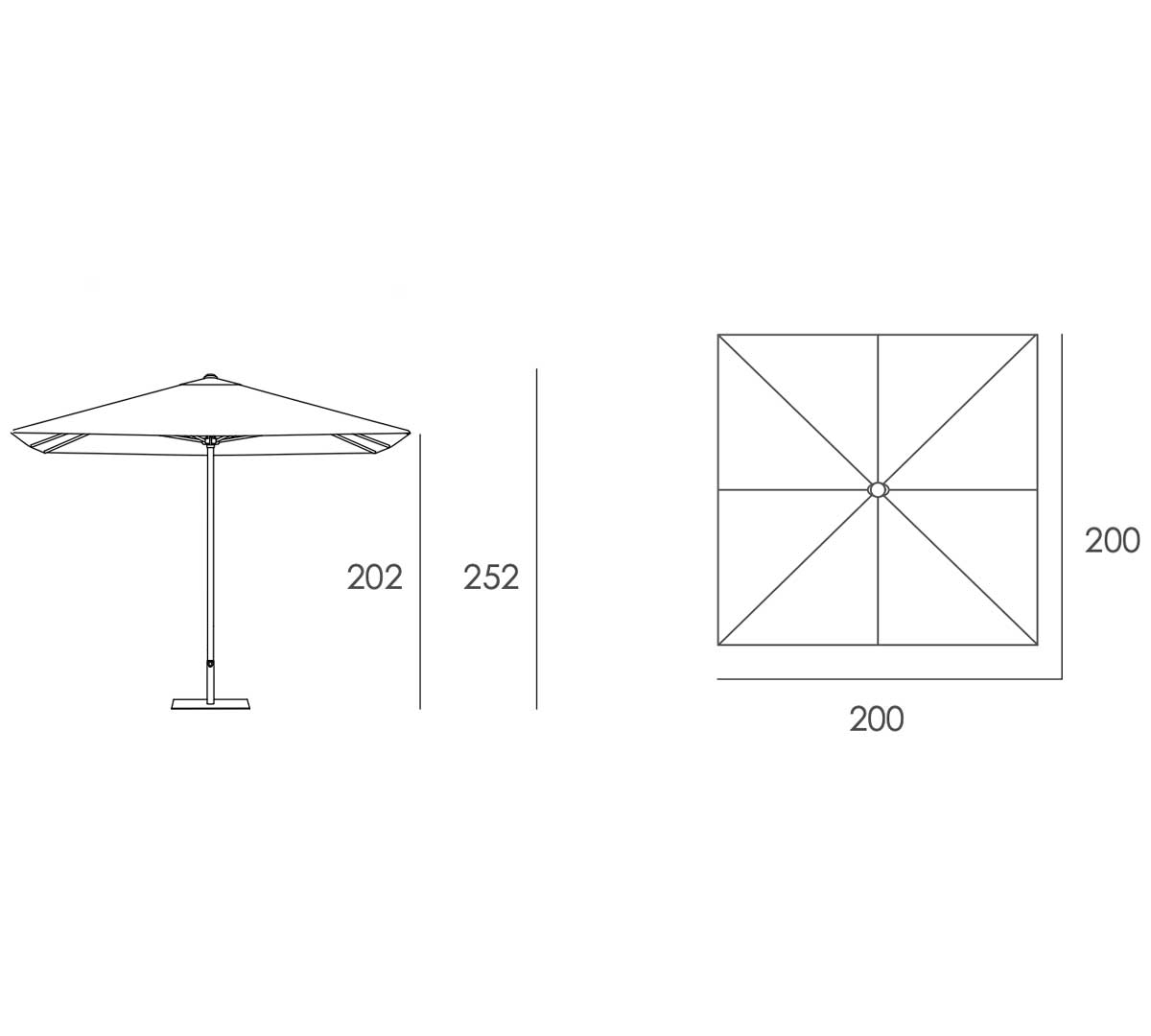 Sombrilla cuadrada con 8 varillas y el mástil de madera de eucalipto barnizada con un diámetro de 38 mm. La apertura es por poleas. El telaje es de olefin con un gramaje de 190 g y está disponible en 14 colores. La base no está incluida. Consulta las bases disponibles.