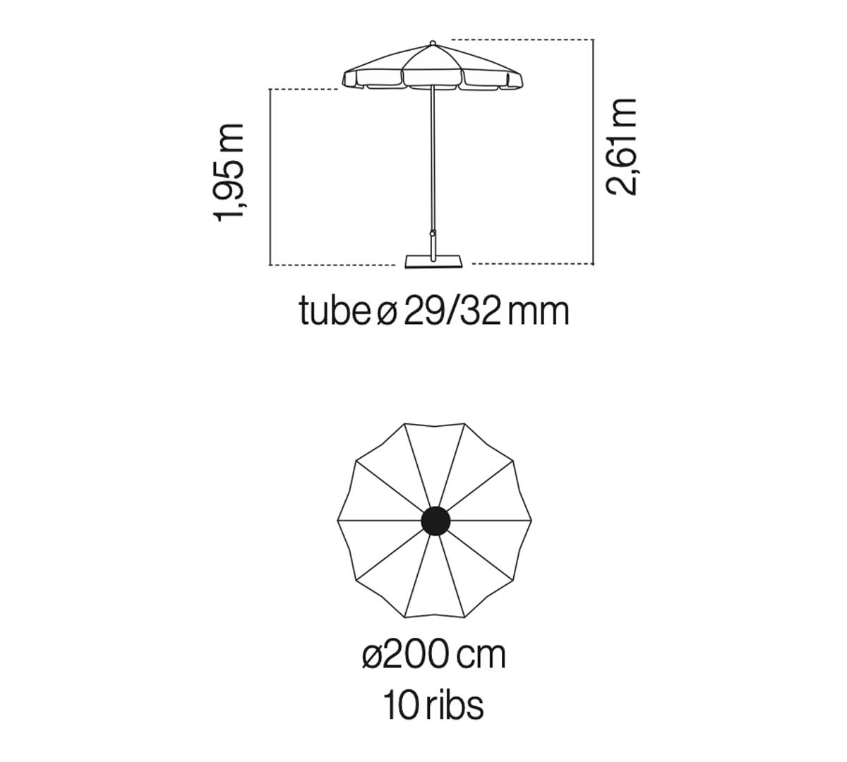 Sombrilla redonda de aluminio con el mástil en color crudo regulable en altura. El telaje es de olefin con un gramaje de 190 g y está disponible en 14 colores. La base no está incluida. Consulta las bases disponibles.
