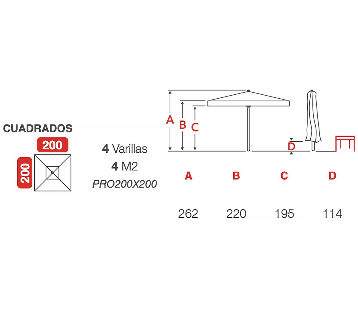 | Gaggio Parasol Professional 2x2 Color Mástil Blanco / Color Telaje Beige Claro | ||