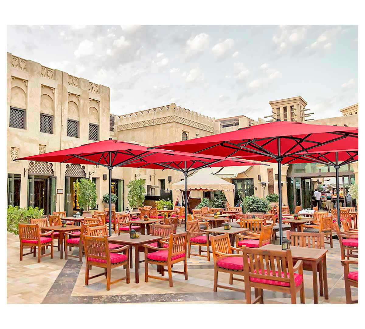 El parasol Gaggio Professional 2 x 2 es idóneo para terrazas, jardines, piscinas, zonas de restauración al aire libre, hoteles, resorts y cualquier espacio exterior donde se requiera una protección solar eficaz y elegante.
