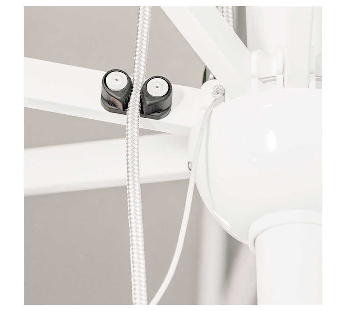 Como cualquier parasol, no está diseñado para soportar viento fuerte. Recomendamos cerrarlo siempre cuando no esté en uso o en caso de rachas de viento, incluso moderadas, para evitar daños en la estructura o el telaje.