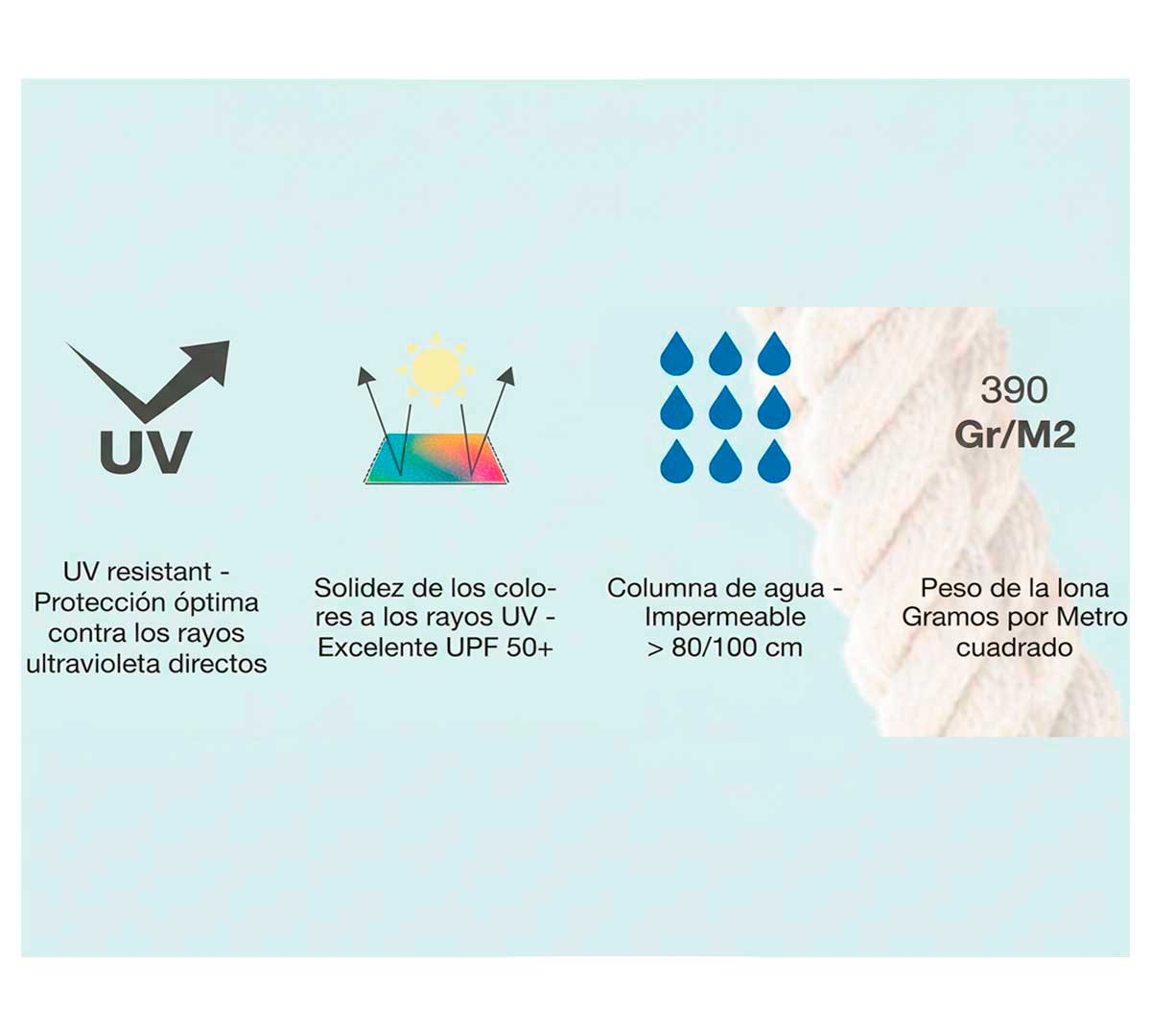 Esta sombrilla se vende por defecto con el telaje en Tejido Náutico Resinado Impermeable 390 g/m²: