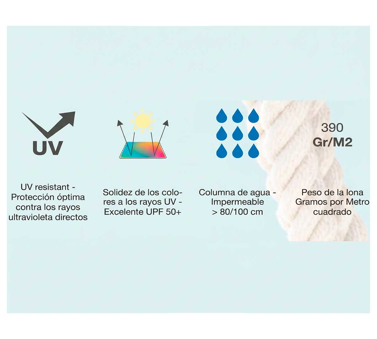 Esta sombrilla se vende por defecto con el telaje en Tejido Náutico Resinado Impermeable 390 g/m²: