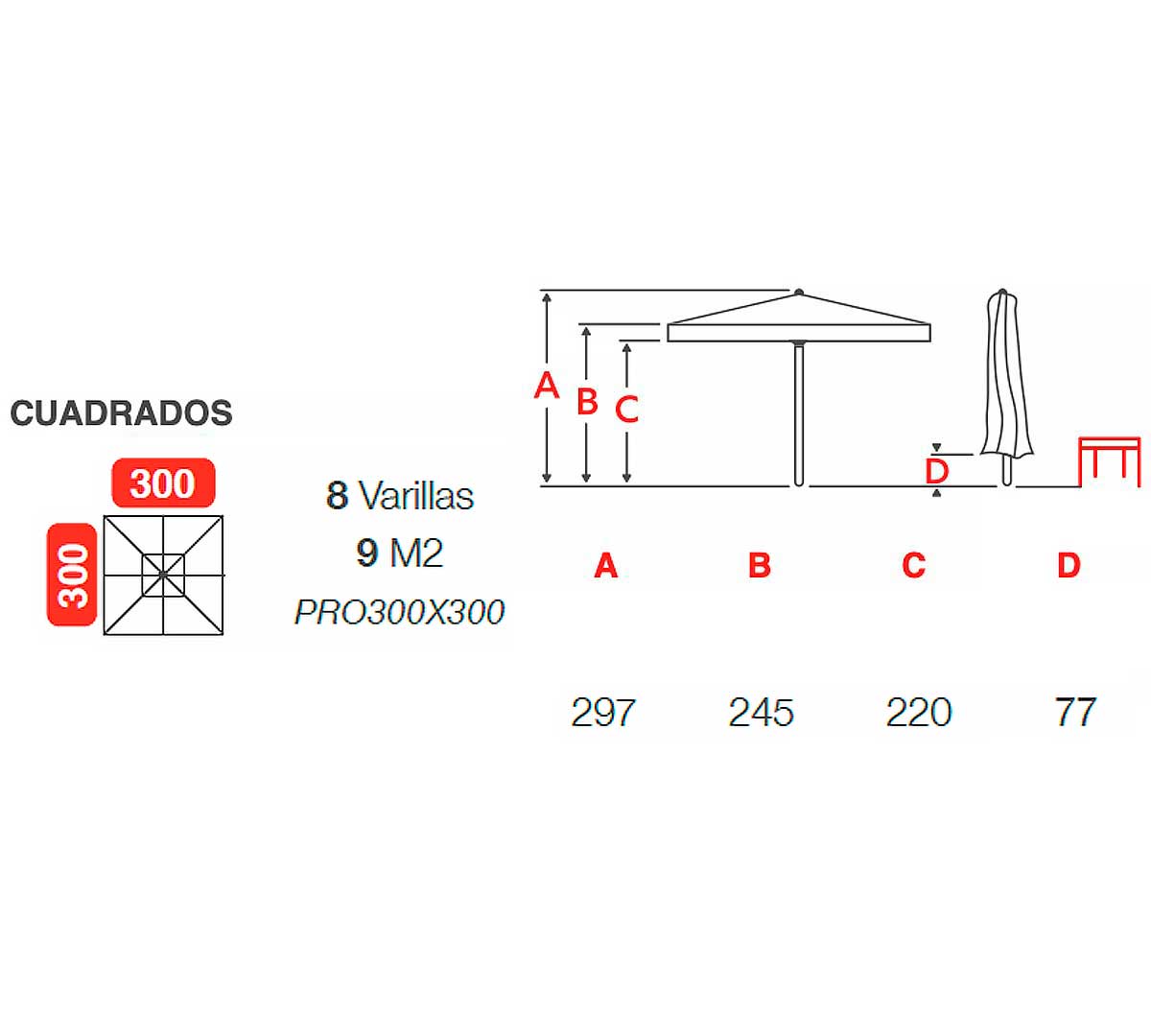 | Medidas Parasol | 3000 x 3000 | mm |