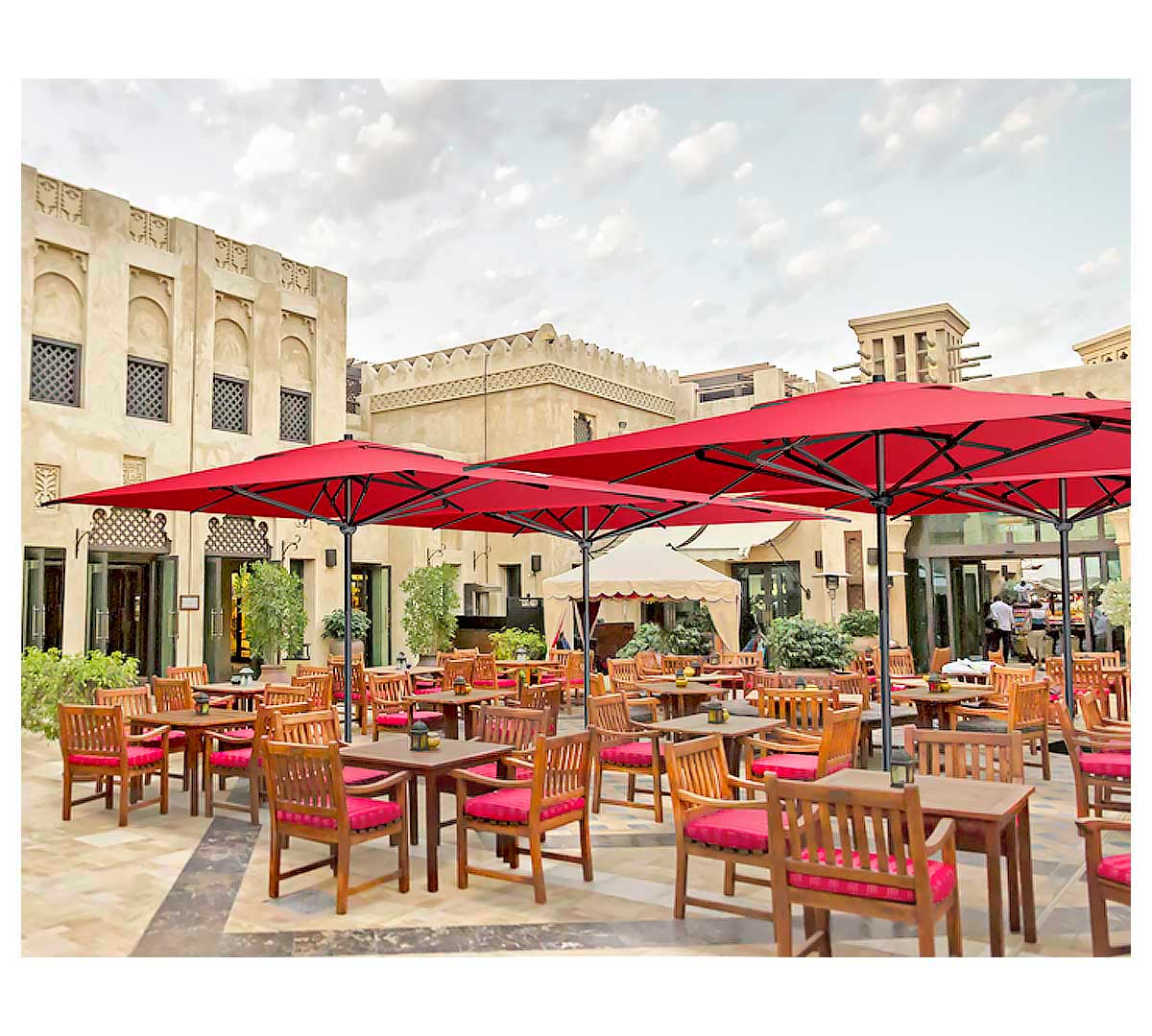 Este parasol está especialmente indicado para terrazas de restaurantes, hoteles, cafeterías, piscinas, jardines y cualquier espacio exterior que precise de una protección solar eficaz y elegante. Su diseño robusto y ligero permite cubrir áreas de hasta 9 m² por unidad, siendo ideal para crear zonas de sombra confortables en ambientes de uso intensivo.