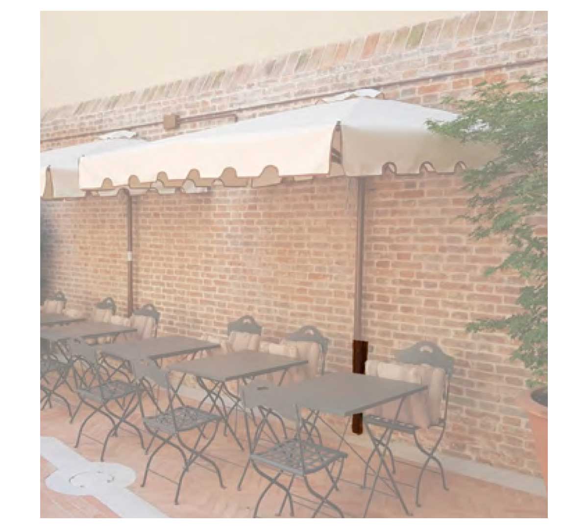 El Tubo para Montaje en Pared de Gaggio está diseñado para sujetar un parasol fijándolo directamente a la pared. Es una solución ideal para negocios de Hostelería con espacio limitado o zonas de paso donde se necesita mantener el suelo despejado, optimizando la superficie útil y mejorando la distribución del mobiliario exterior.