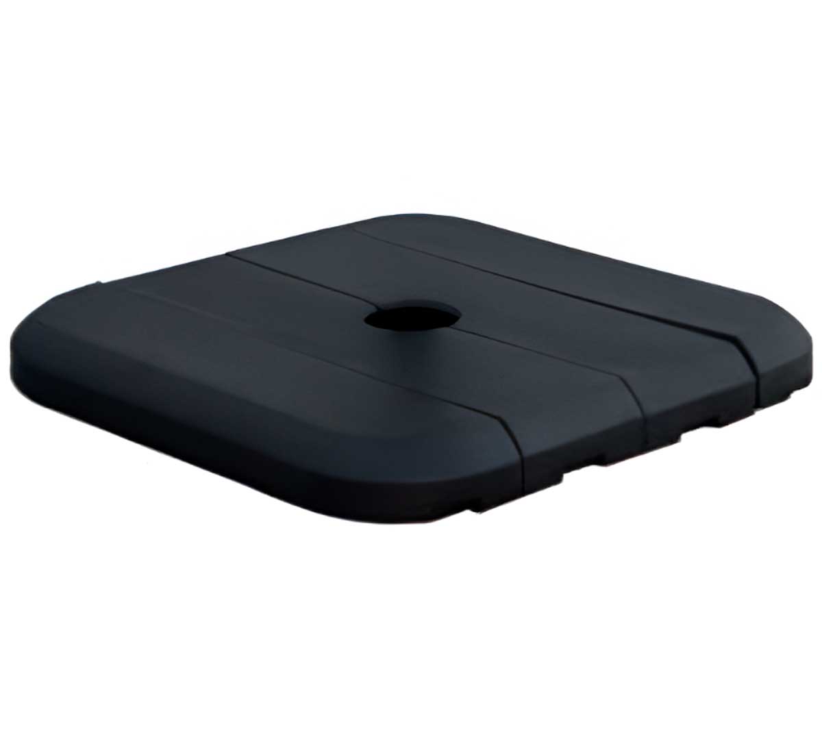 Base Rellenable para parasoles de gran tamaño, diseñado para ofrecer estabilidad y seguridad en espacios exteriores como terrazas, patios o jardines. Puede rellenarse con agua o arena hasta un peso de 140 kg. Disponible en color negro o blanco. Es compatible con los parasoles Sicilia y Mallorca de Garbar.