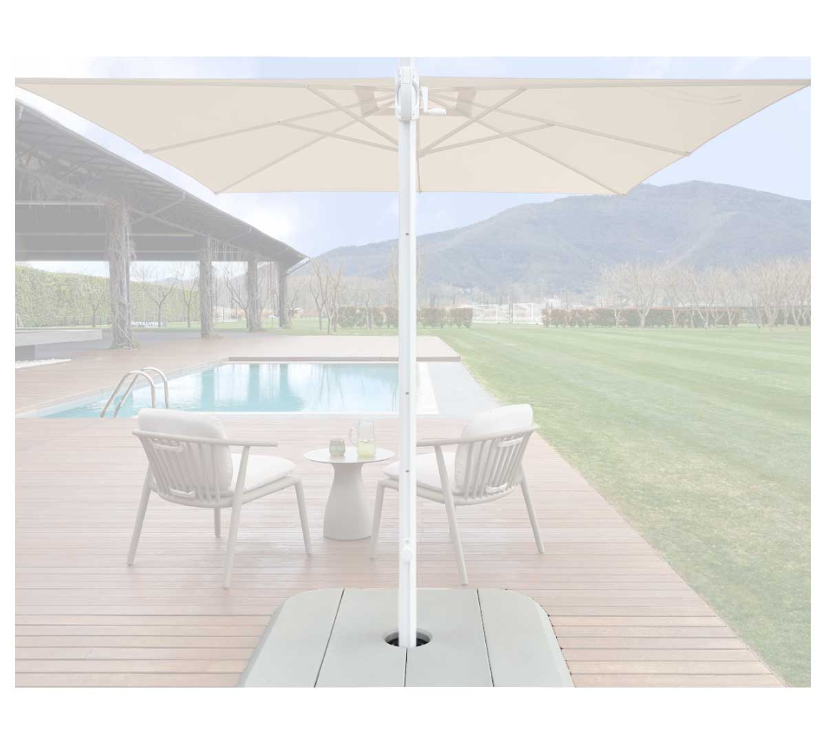 Este pie es ideal para instalar parasoles en terrazas, patios, jardines o cualquier zona exterior donde se requiera una fijación estable y segura, especialmente en ubicaciones expuestas al viento o en instalaciones de uso continuado.