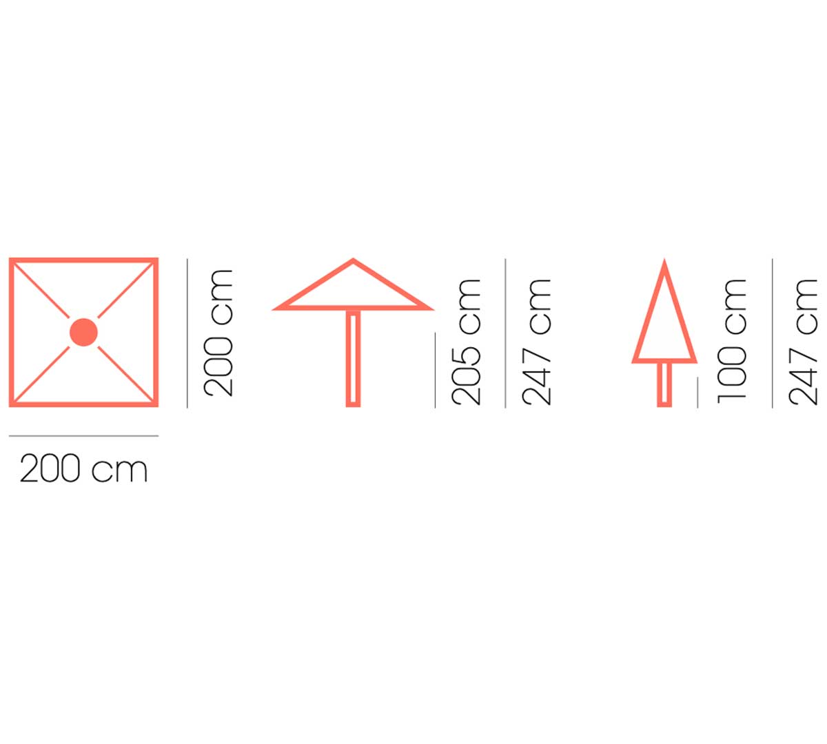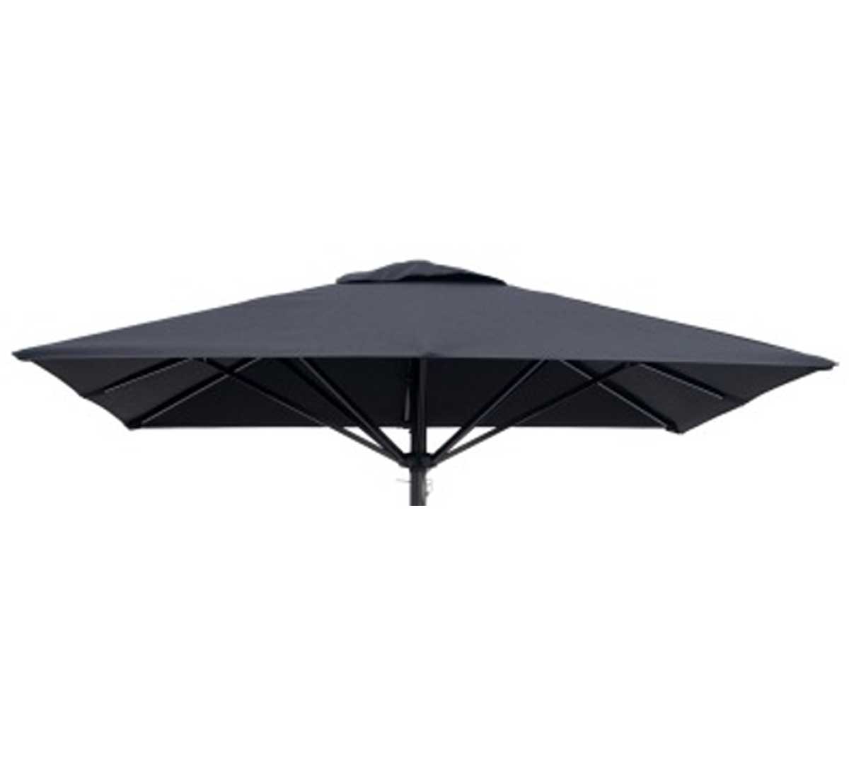 Sombrilla exterior cuadrada ideal para terrazas, jardines o espacios de Hostelería. Con estructura y mástil de aluminio resistente. Tiene sistema de doble polea para apertura fácil y segura. Telaje de poliéster tintado en masa que ofrece protección solar. Sujeción con 8 varillas de aluminio. Incluye funda. La base no está incluida. Consulta las bases disponibles.