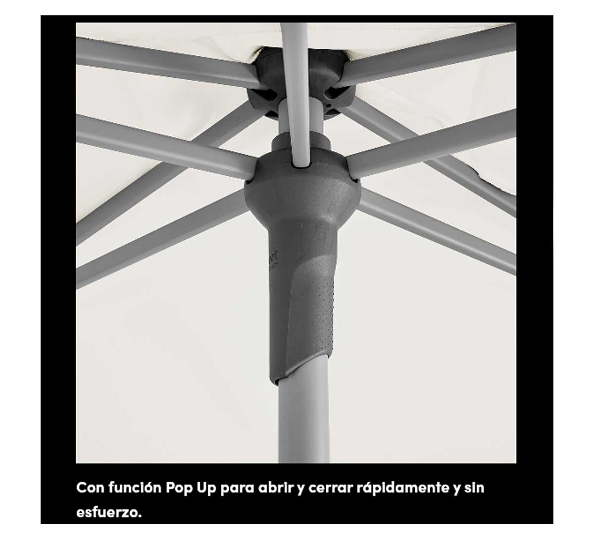 El parasol cuenta con una función Pop-Up integrada, lo que permite abrirlo y cerrarlo fácilmente y sin esfuerzo.