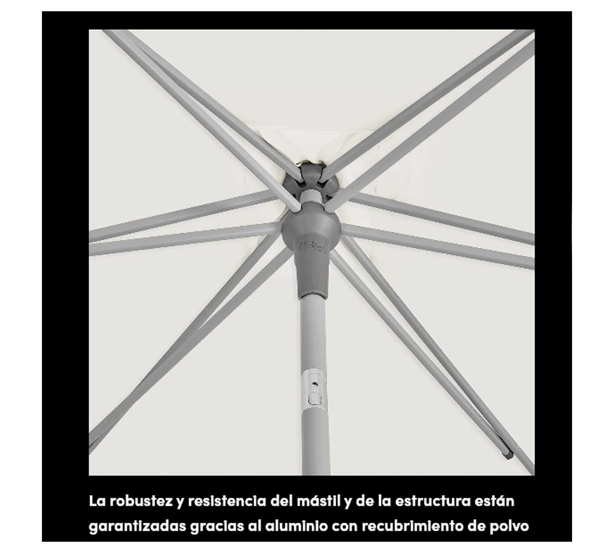 Este parasol está especialmente indicado para su uso en terrazas, jardines, praderas y balcones, donde se requiera una protección solar robusta y versátil. Es perfecto para crear zonas de sombra confortables en espacios exteriores, tanto en entornos residenciales como en áreas de restauración y Hostelería.