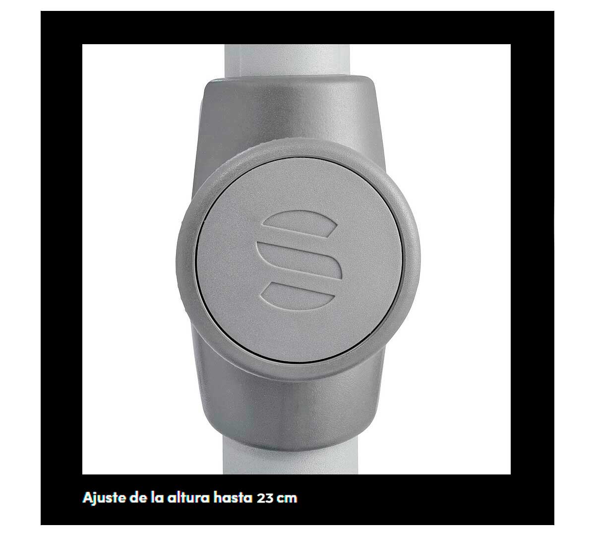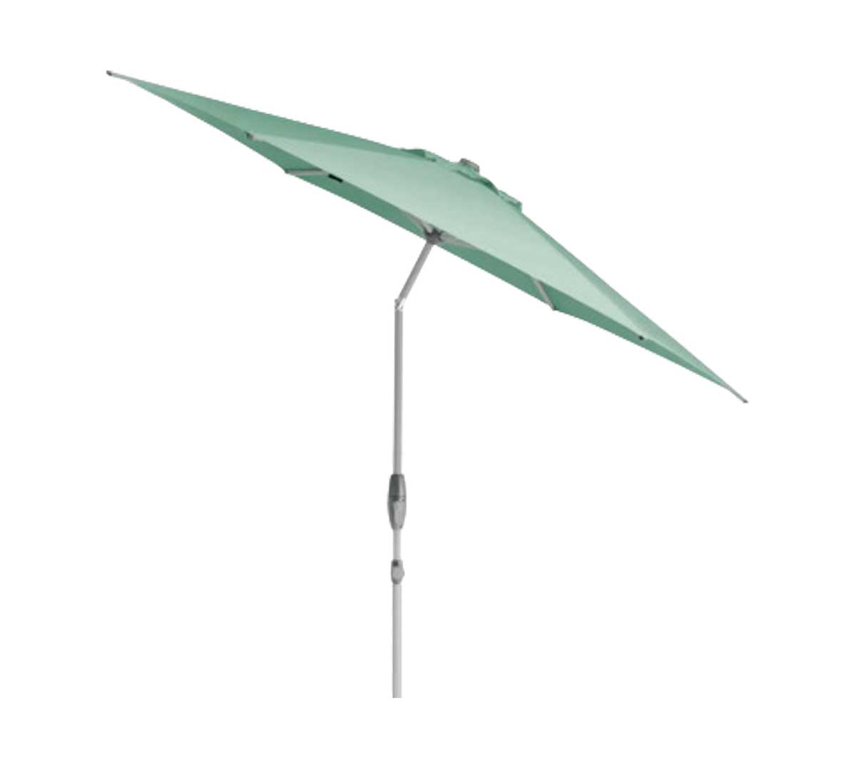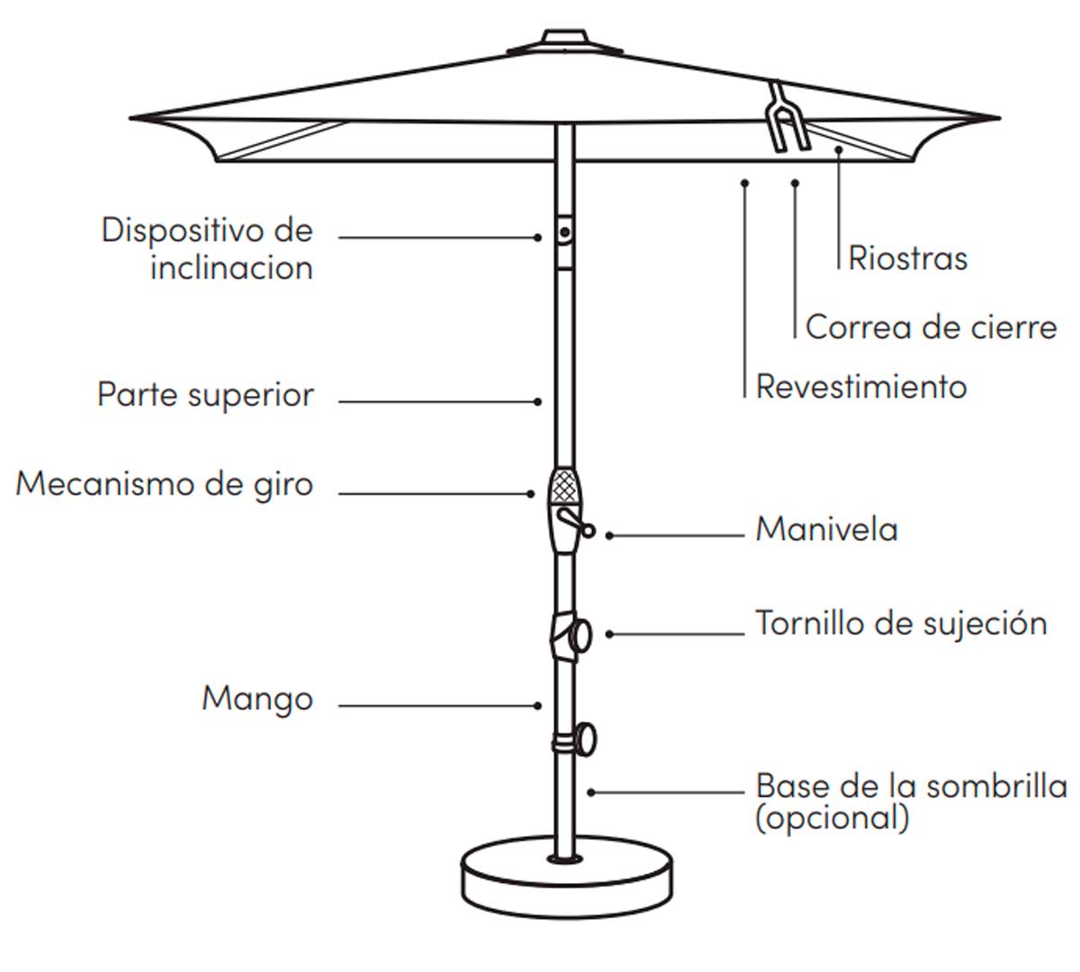 Este parasol se abre y cierra fácilmente con una manivela ergonómica, y su toldo se puede inclinar de forma continua mediante un mecanismo de giro a altura de cadera, lo que permite ajustar la orientación según el ángulo del sol.