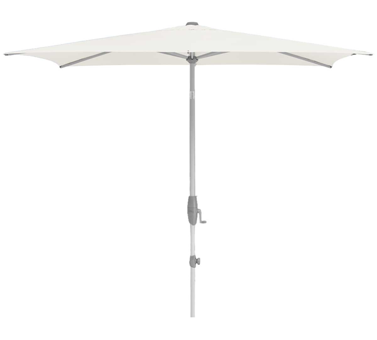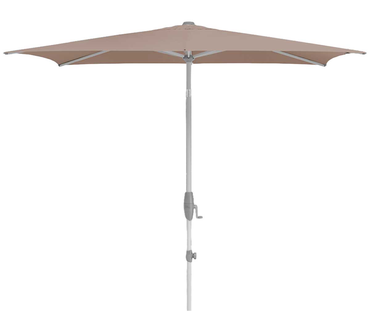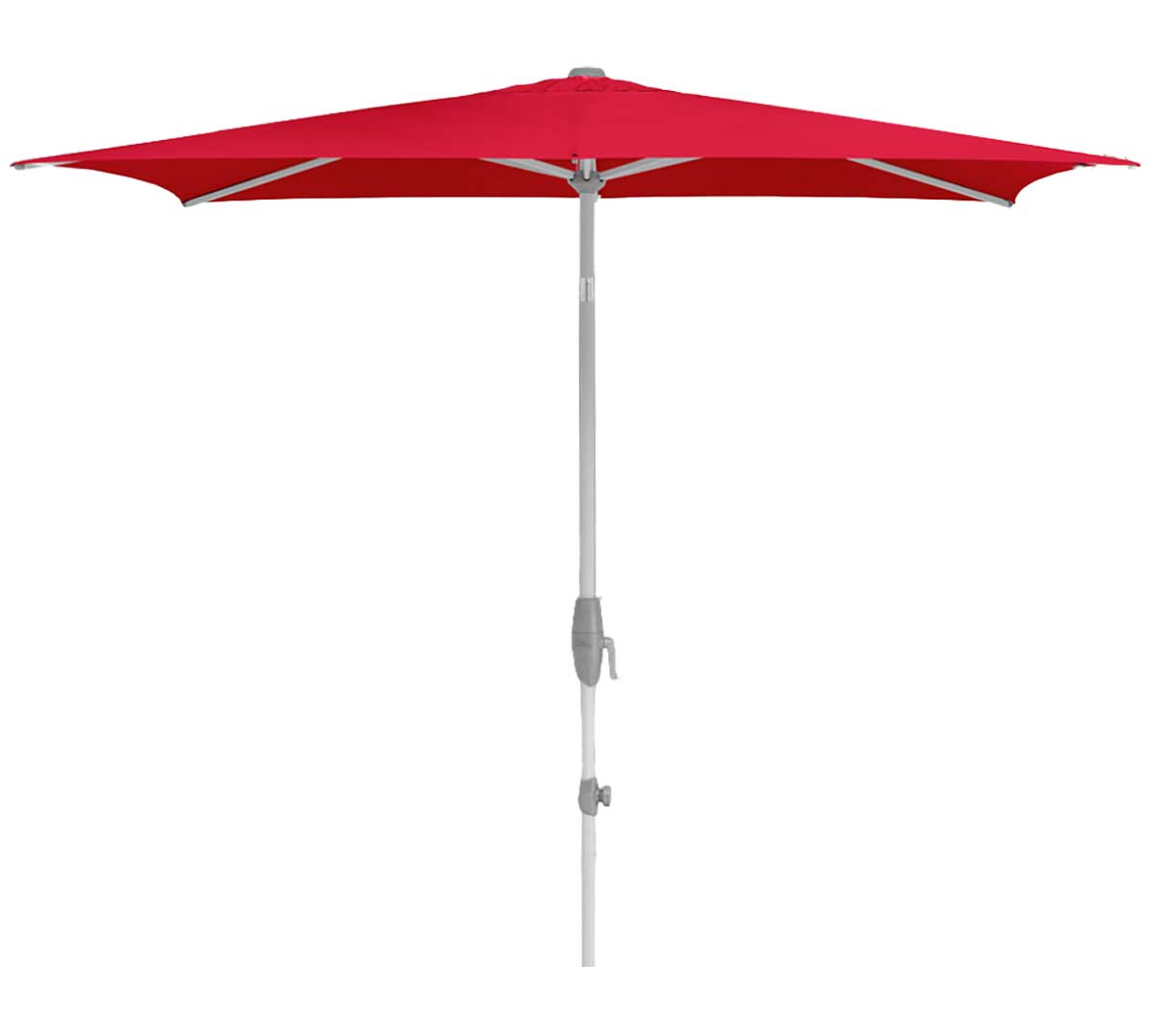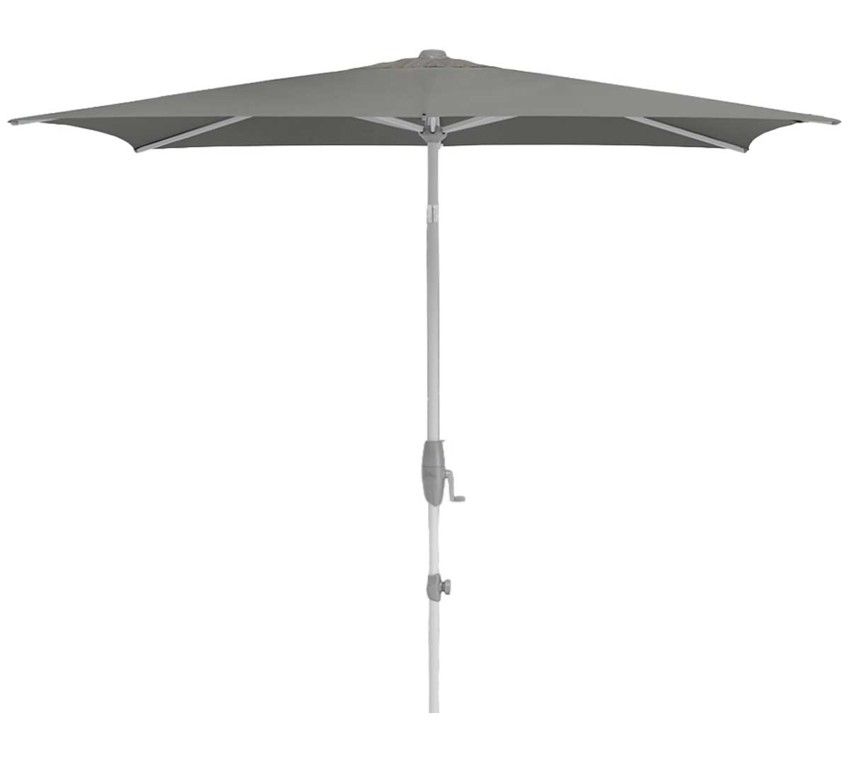 Sombrilla rectangular de mástil central con mecanismo de manivela giratoria que facilita abrir y cerrar con poco esfuerzo y permite inclinar la cubierta de forma continua a la altura de la cadera. Su estructura y mástil de aluminio 100 % la hacen robusta y resistente a la corrosión, y su tejido de poliéster ofrece el 98 % de protección UV. La base no está incluida. Consulta las bases disponibles.