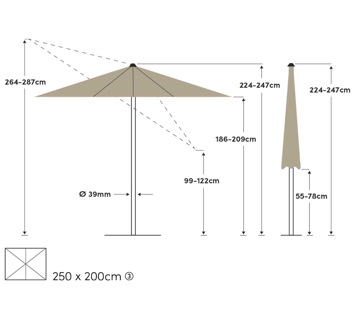 | Medidas Parasol | 2500 x 2000 | mm |