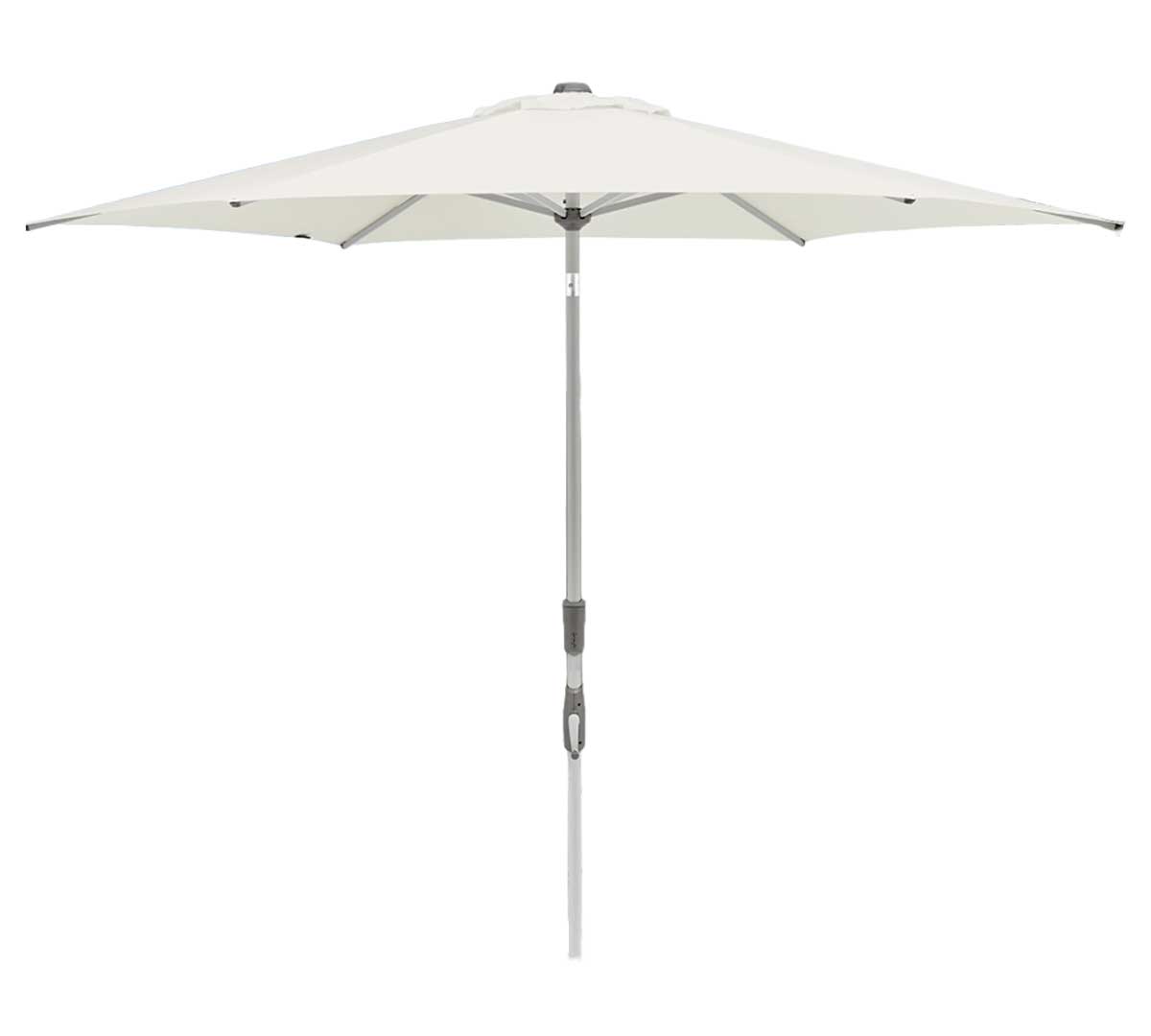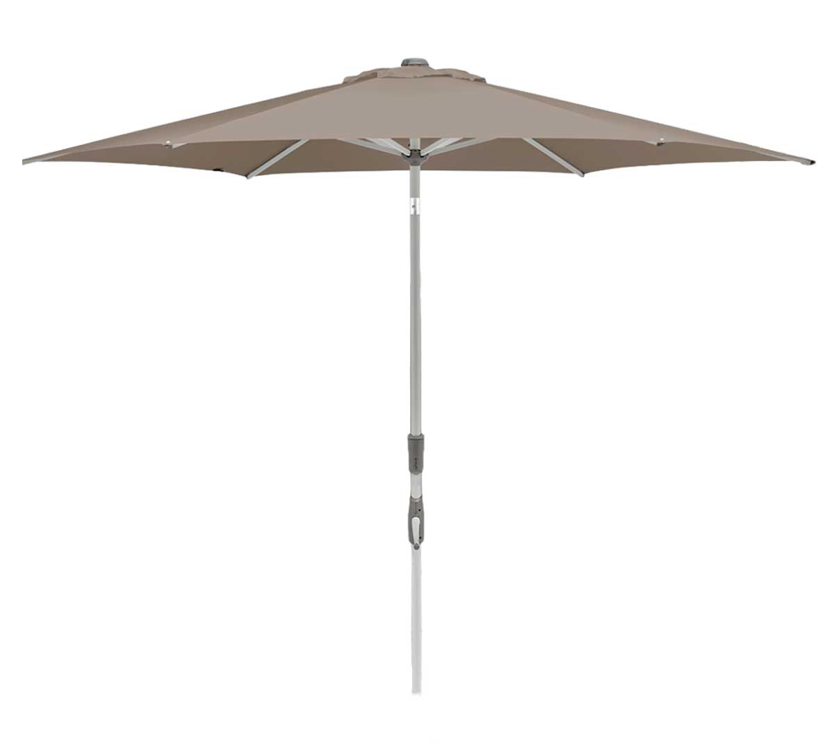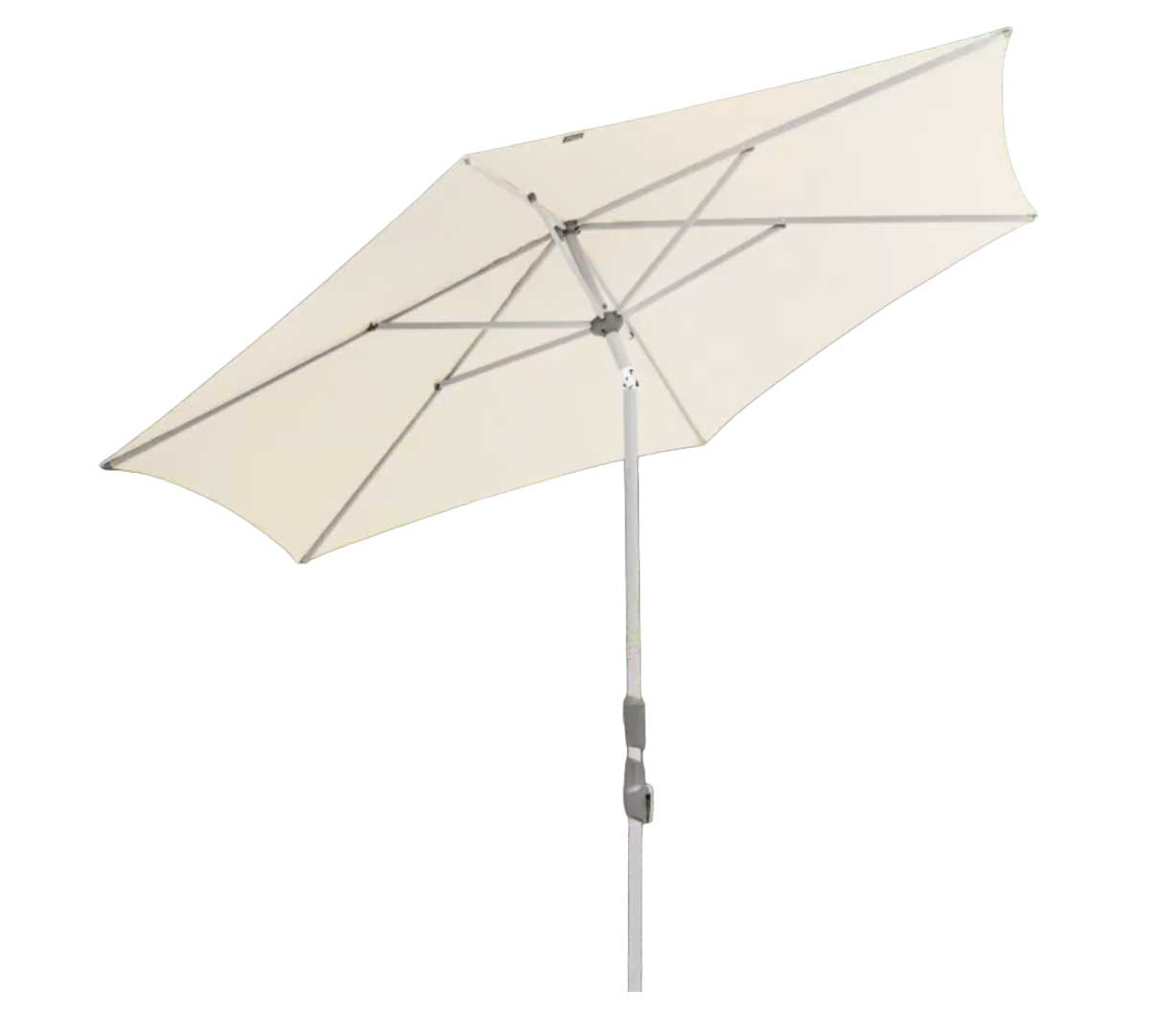 Sombrilla redonda que se abre y cierra mediante manivela. Ofrece protección solar con tejido 100 % poliéster de 180 g/m² repelente al agua y 98 % de protección UV. Permite una inclinación hacia un lado. El mástil es de aluminio y la estructura de acero. La base no está incluida. Consulta las bases disponibles.