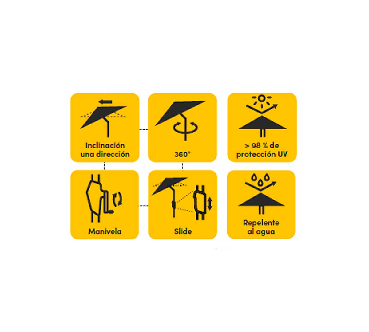 Sí. El Glatz Suncomfort Slide 3 permite inclinar el parasol hacia un lado, adaptando la sombra según la posición del sol. Esto resulta especialmente útil en terrazas de hostelería para mantener protegidas las mesas durante todo el servicio.