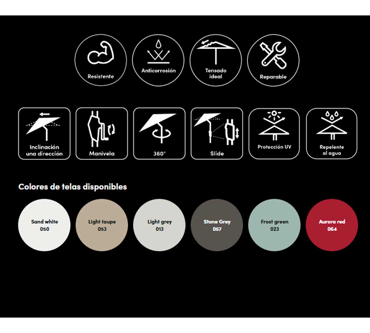 El Parasol Suncomfort Slide 3 de Glatz es una sombrilla de diseño moderno y funcionalidad avanzada, ideal como parasol o sombrilla para terrazas, jardines y balcones que requieren una protección solar eficiente y elegante.