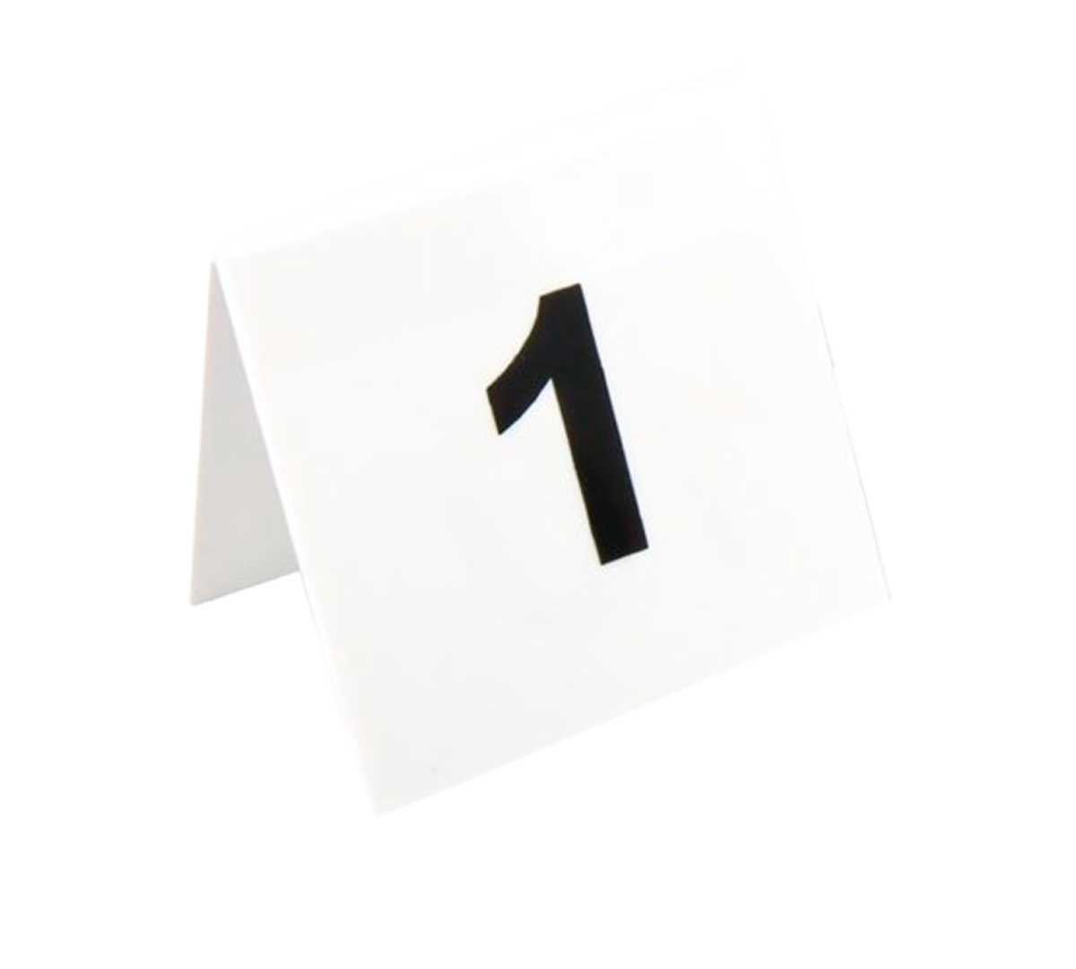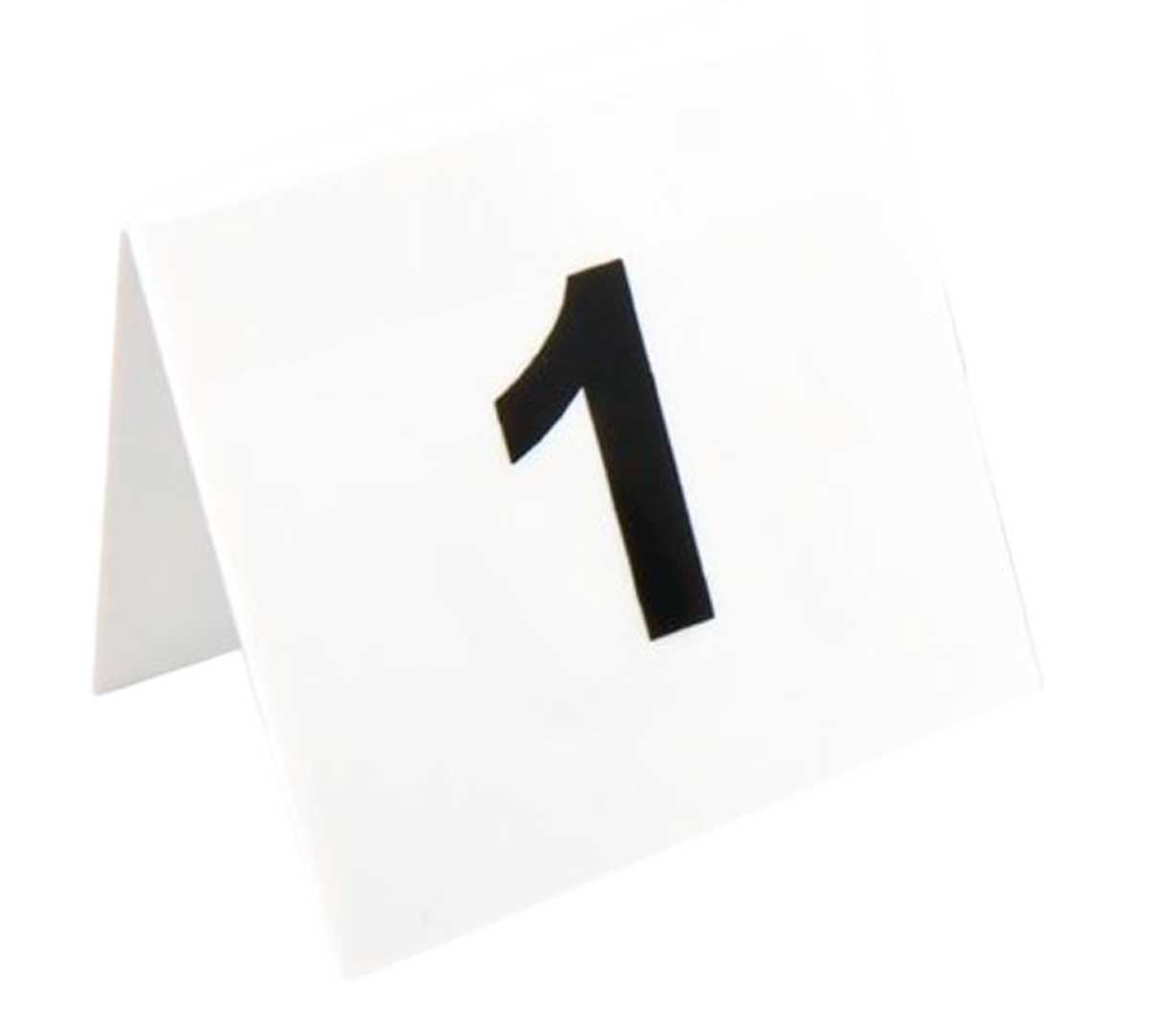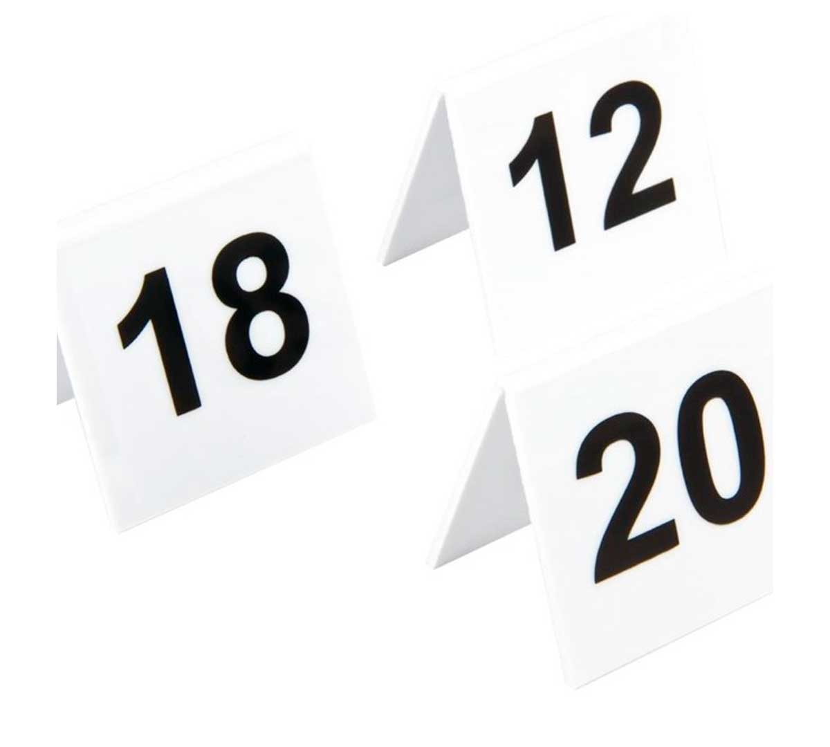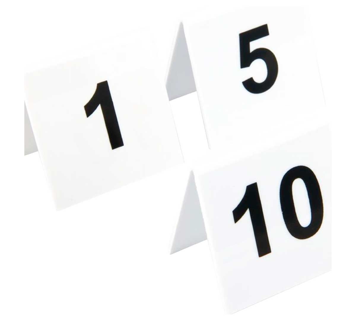 Identificadores de plástico resistentes, ideales para numerar mesas de forma visible y ordenada. Fáciles de limpiar y con dimensiones compactas para una integración discreta en cualquier sala.