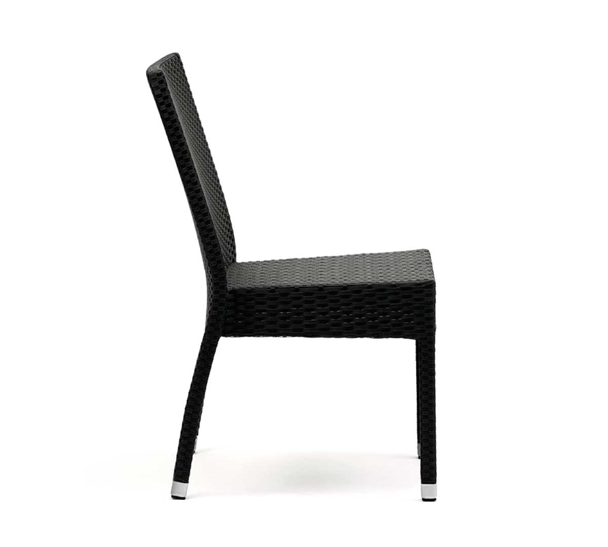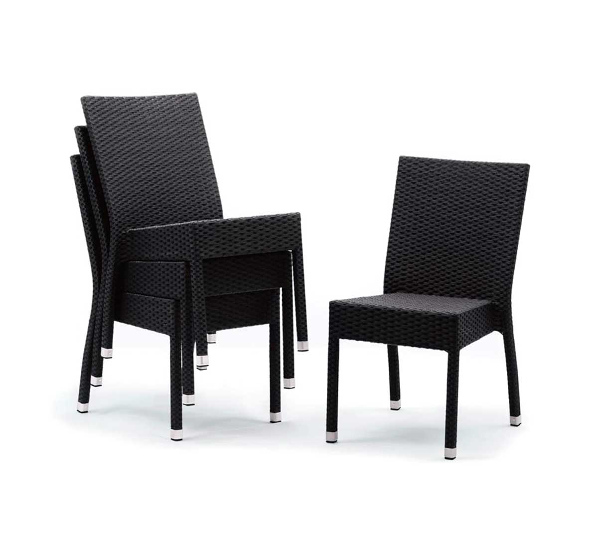 Las Sillas Apilables Símil Ratán de Bolero, de color carbón, son aptas para uso exterior, son ideales para los diferentes establecimientos de hostelería.