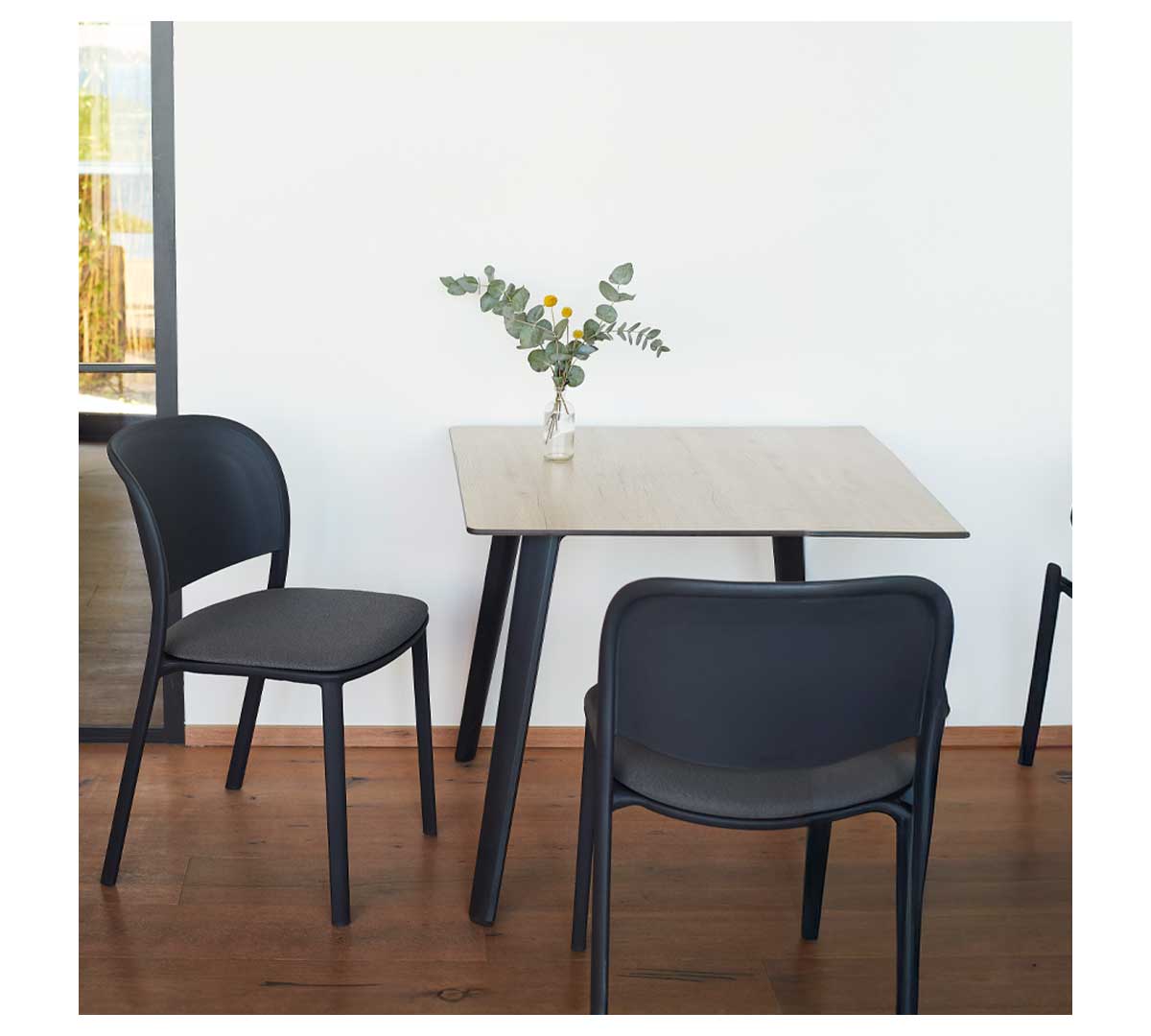 Esta silla tapizada de interior está pensada para equipar comedores, cafeterías, zonas de desayuno, áreas lounge, salas de espera, espacios de coworking y comedores residenciales donde se requiera una solución de asiento confortable, visualmente armónica y con una buena resistencia al uso continuado.