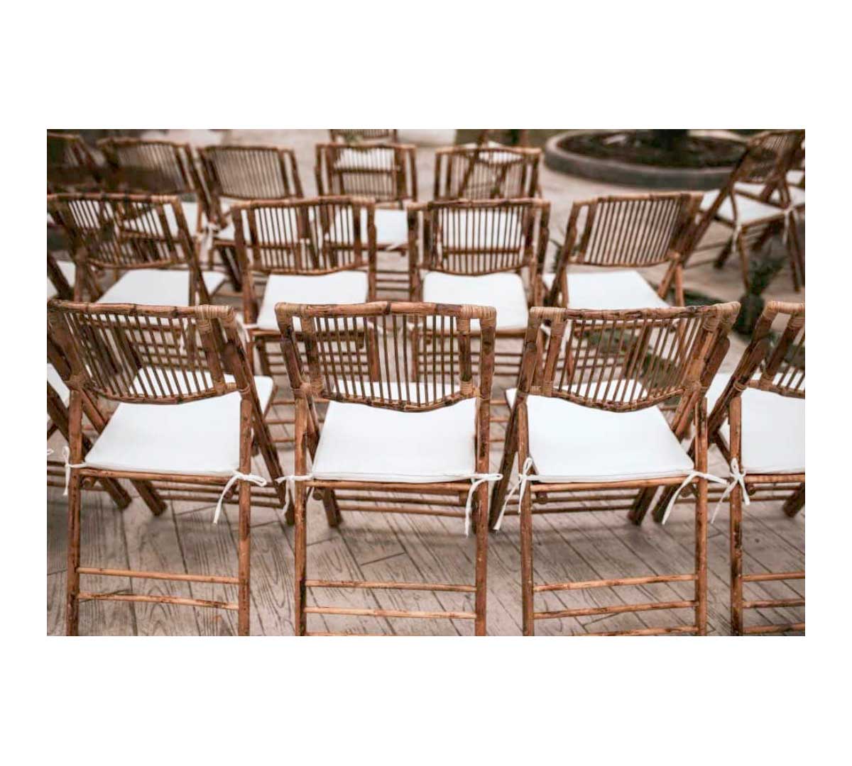 La Silla Bambú Plegable con Cojín de Isabella es es una opción versátil y práctica para eventos y celebraciones al aire libre.