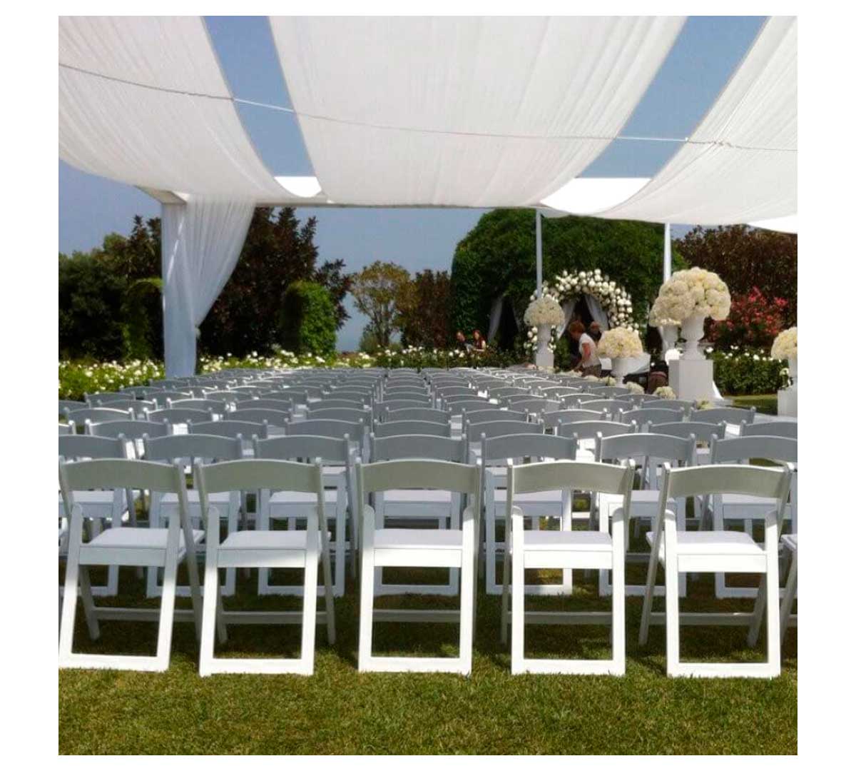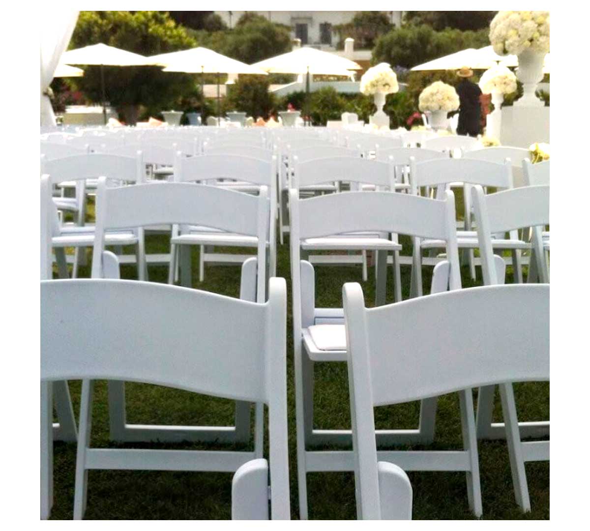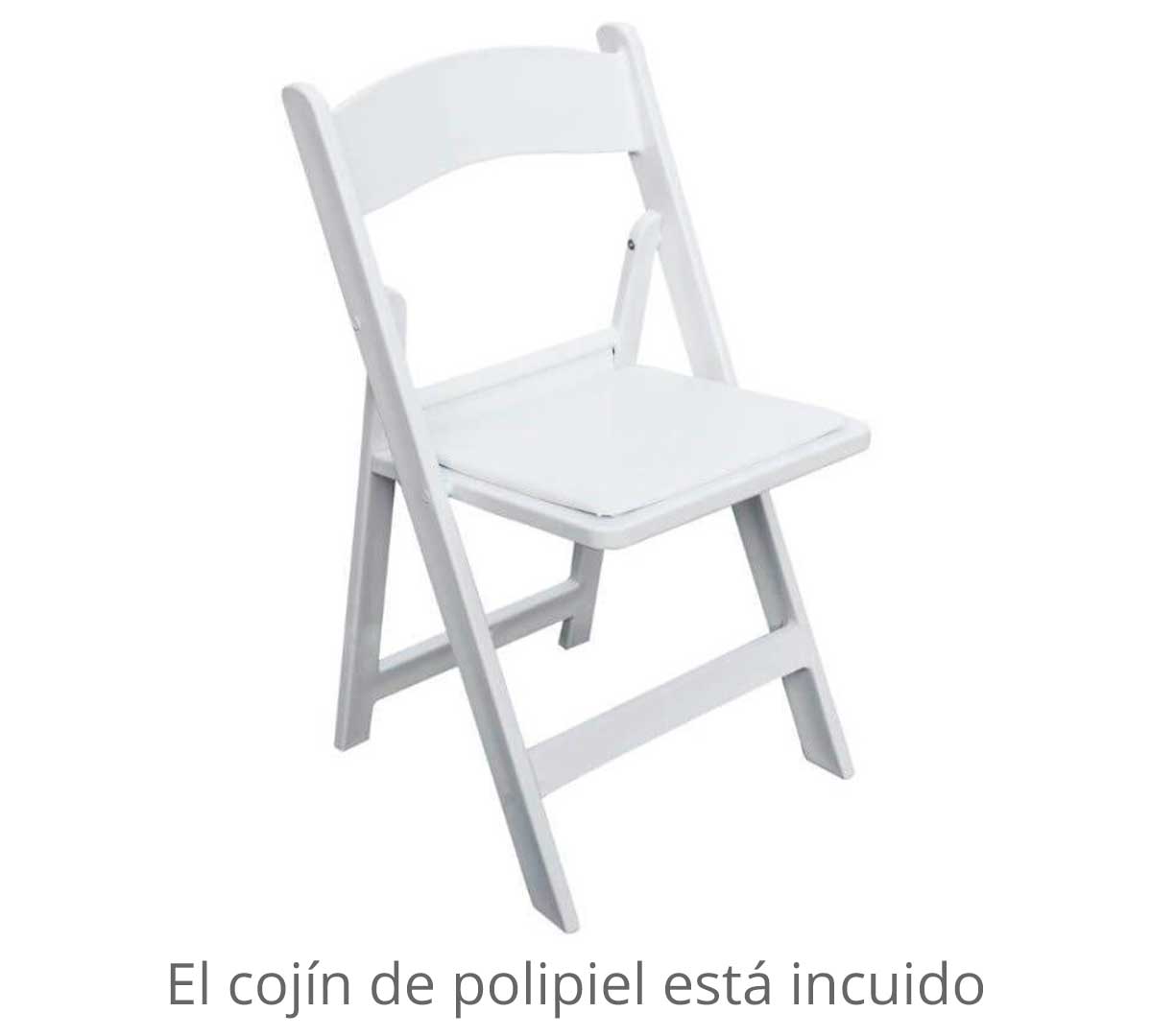 Sillaperfecta para eventos y celebraciones. Es apilable una vez que está plegada. Incluye un cojín tapizado en polipiel. Está disponible en color blanco o negro. Está fabricada en polipropileno con resistencia UV.