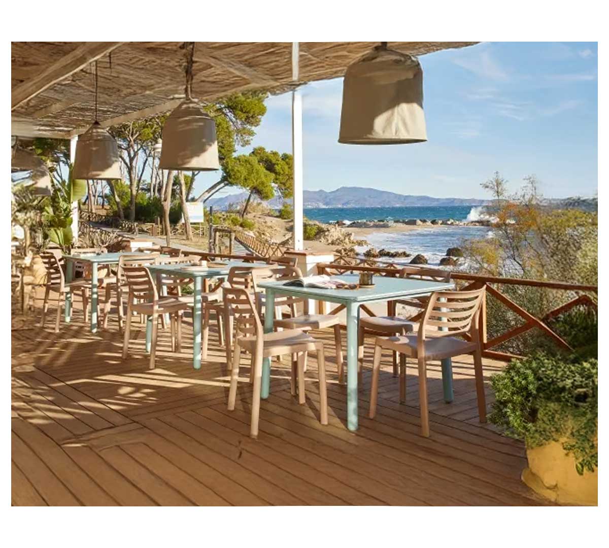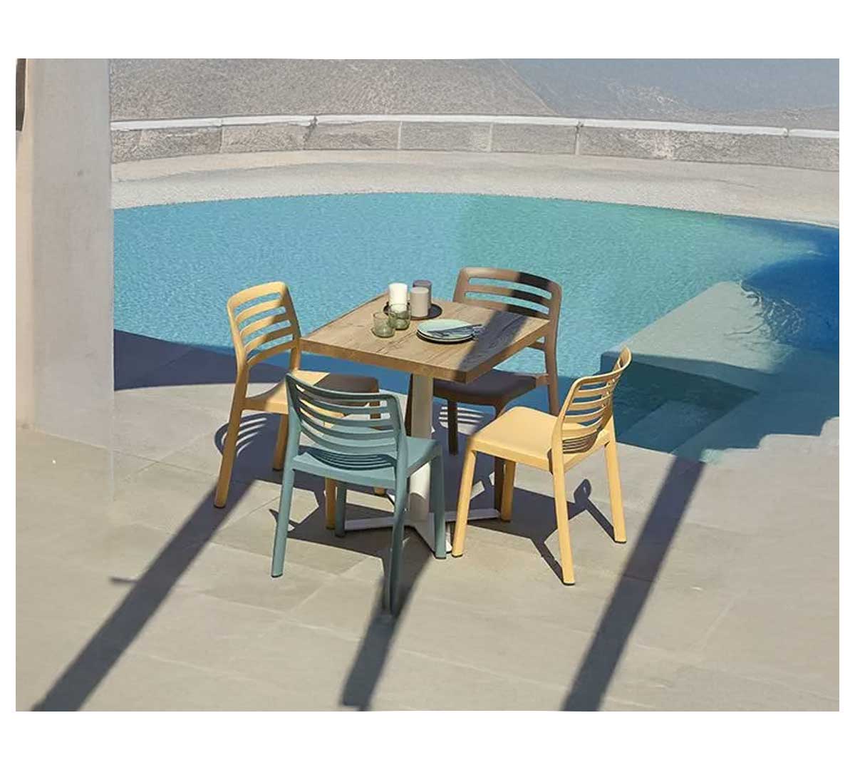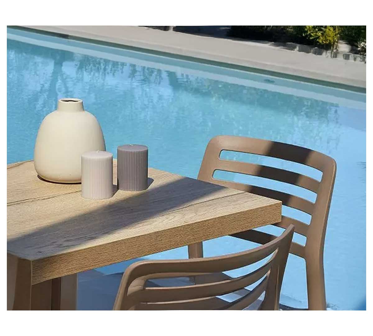 La Silla Wind de Resol cuenta con protección contra los rayos UV por lo que es apta para exteriores. Tiene un diseño simple con respaldo ventilado.