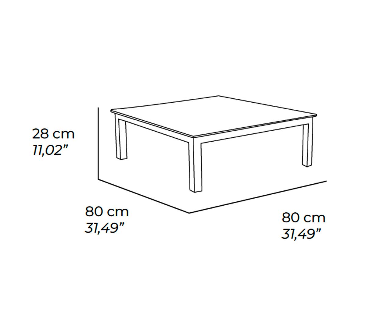Dimensiones 80 x 80 x 28 cm