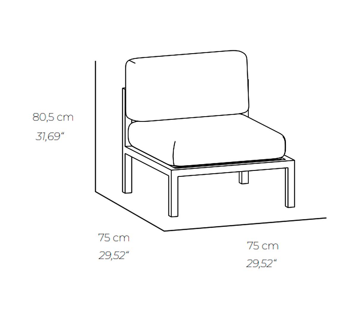 Dimensiones 75 x 75 x 80,5 cm
