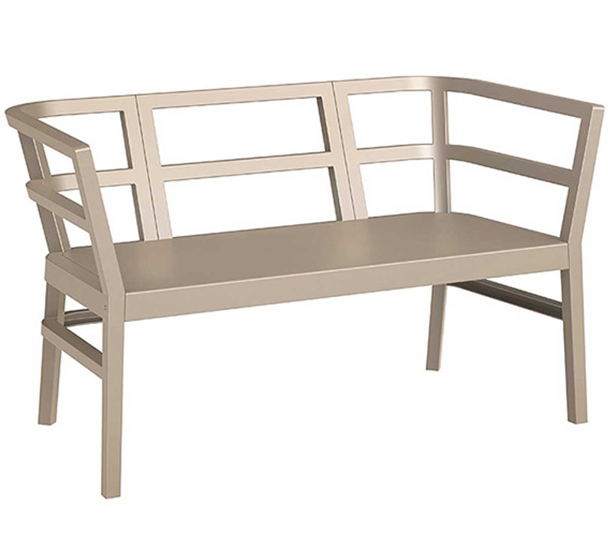 Sofá apto para interior y exterior. Incluye cojín color beige. Cuenta con tratamiento para protección UV. Está fabricado en polipropileno reforzado con fibra de vidrio. Sus dimensiones son 124 cm de ancho, 64,5 cm de fondo y 72,5 cm de altura.