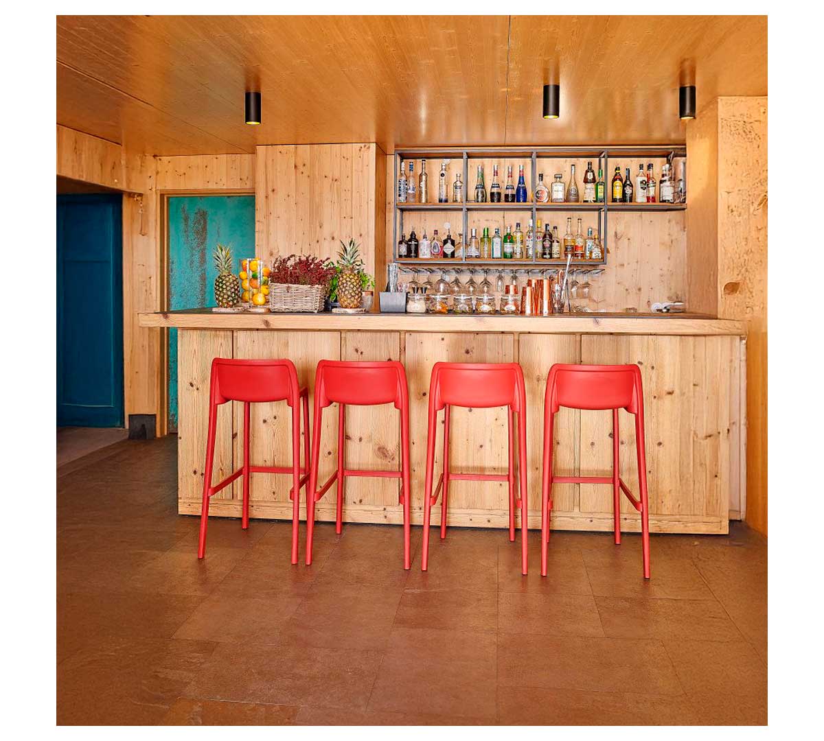 El Taburete ATTIC de Ezpeleta está fabricado mediante inyección por gas en polipropileno reforzado con fibra de vidrio. Para uso exterior.