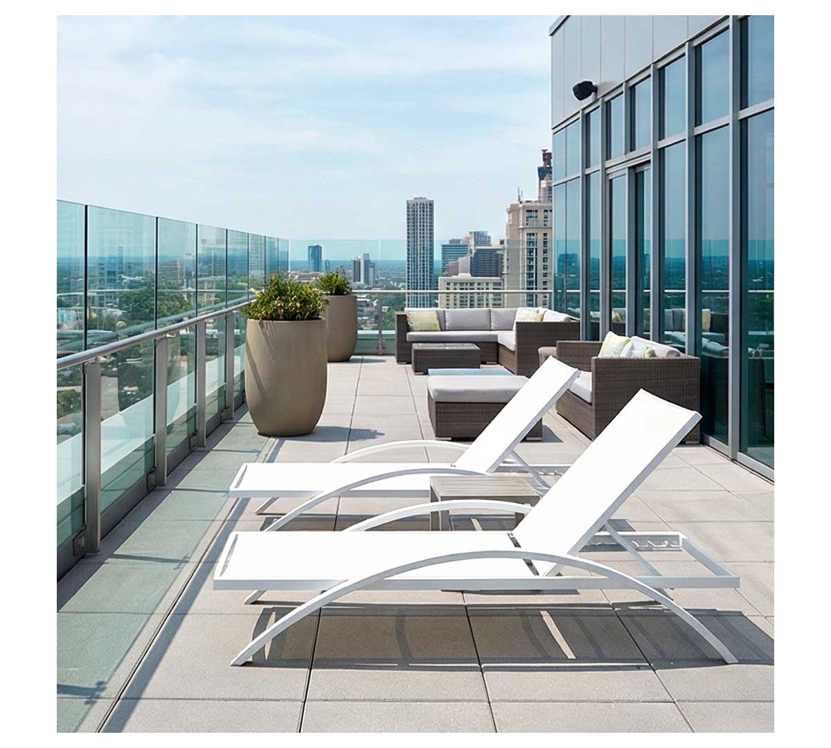 Sí, su diseño sencillo y el acabado en blanco hacen que sea fácil de integrar en distintos ambientes: hoteles, terrazas modernas, piscinas, resorts o beach clubs. Este tipo de mobiliario ayuda a mantener una estética luminosa y ordenada que transmite sensación de limpieza y confort al cliente.