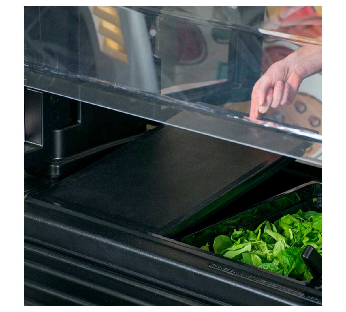 Esta cubierta está especialmente indicada para su uso en carros de autoservicio, estaciones de preparación y líneas de servicio móvil, donde es esencial proteger los alimentos y mantener su temperatura hasta el momento de su consumo. Es perfecta para entornos donde la movilidad y la higiene son prioritarias.