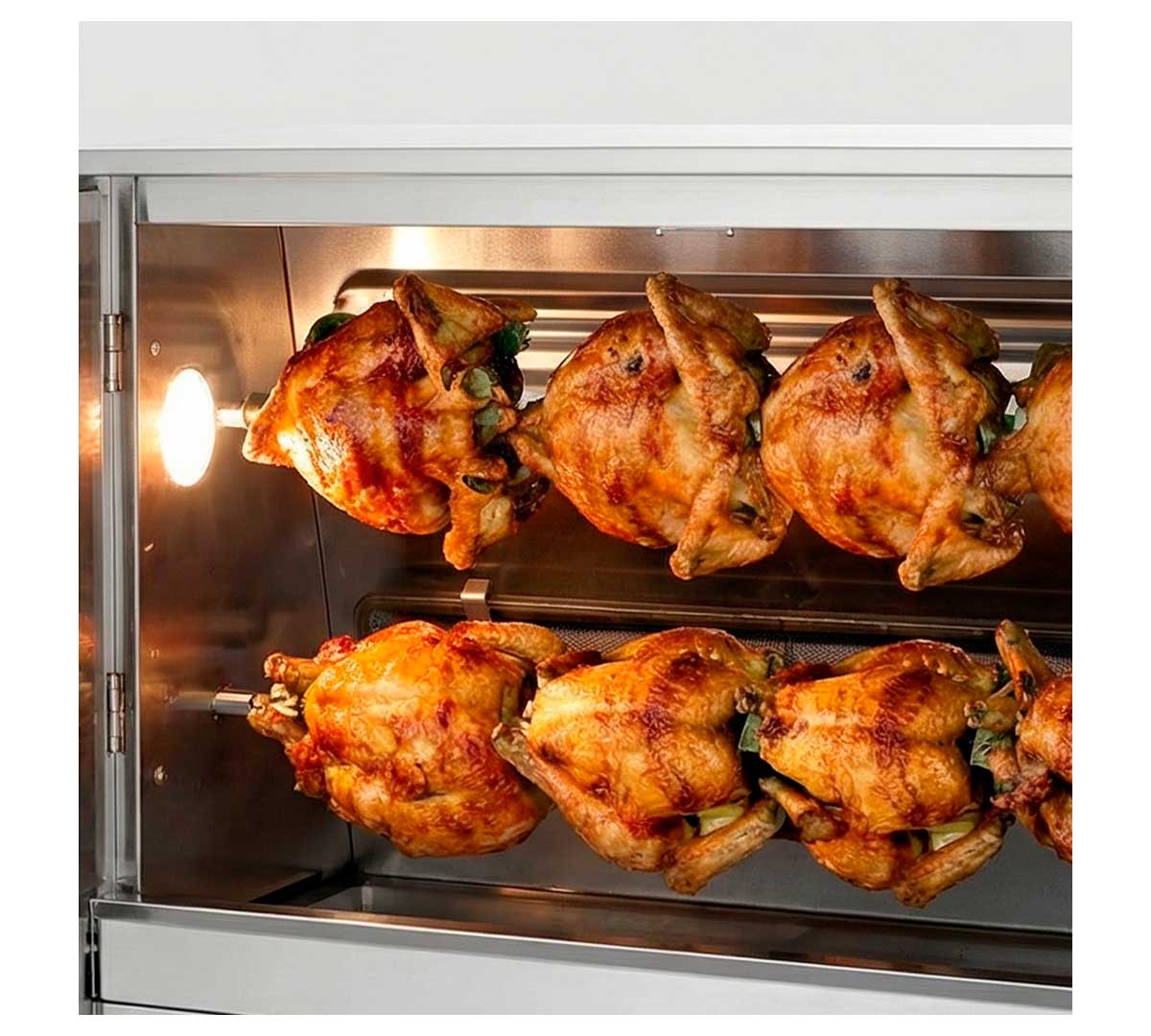 • Capacidad para asar hasta 8 pollos de tamaño estándar en una sola tanda.
