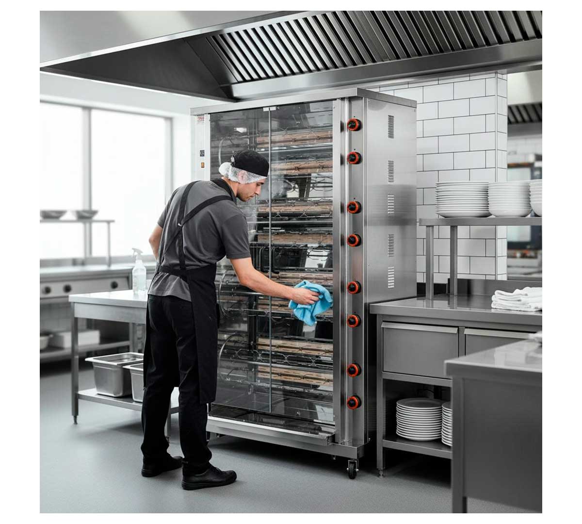 Este modelo de asador pertenece a la gama multifunción que hace que la producción sea más fácil y productiva.