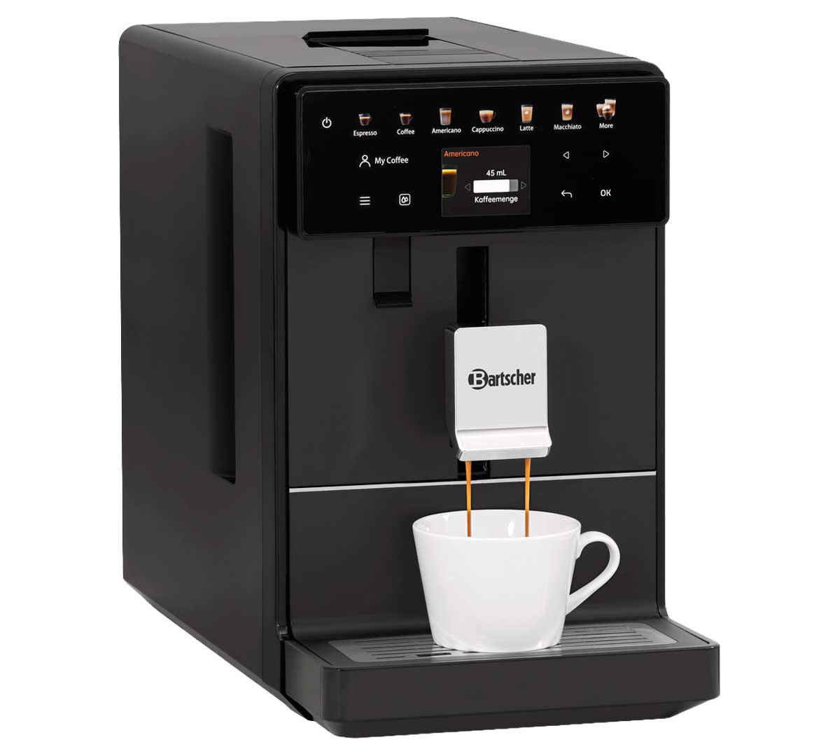 La Bartscher Easy Slim 200 permite ofrecer espresso, café largo y especialidades con leche de forma totalmente automática, combinando facilidad de uso, mantenimiento sencillo y calidad constante en cada taza.