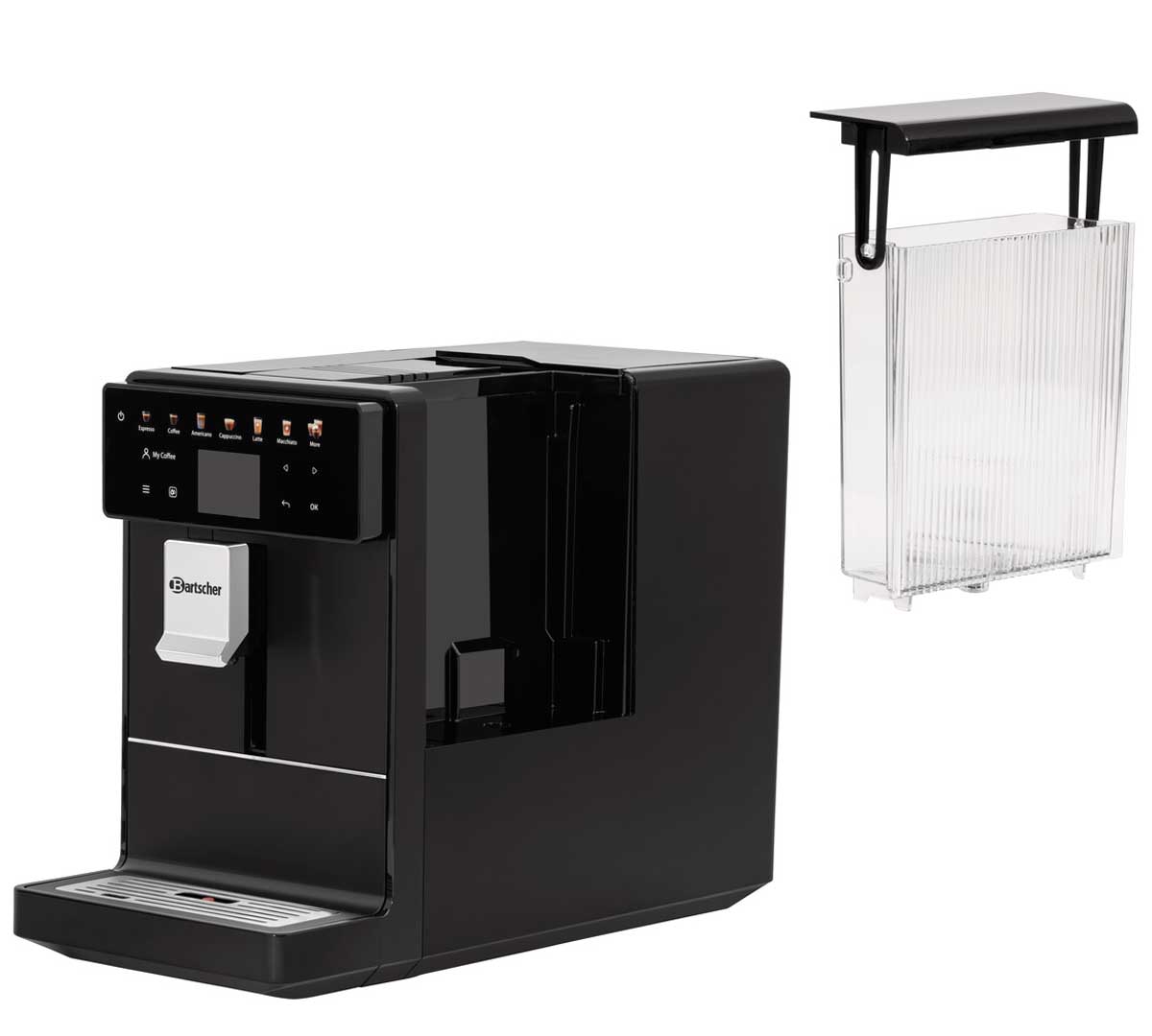 • Recipiente de leche extraíble con caño giratorio.