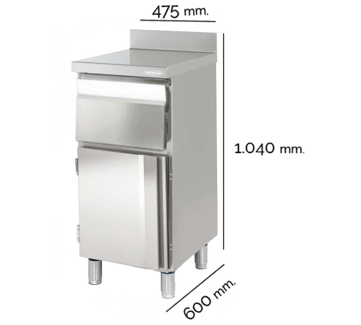 Su diseño compacto y su fabricación en acero inoxidable AISI-304 18/10 garantizan una gran durabilidad, resistencia a la corrosión y facilidad de limpieza, lo que lo convierte en una pieza clave para mantener la eficiencia y la higiene en el área de trabajo.