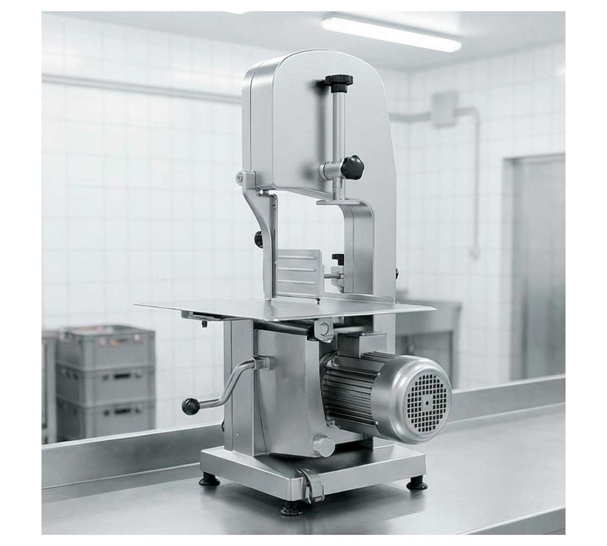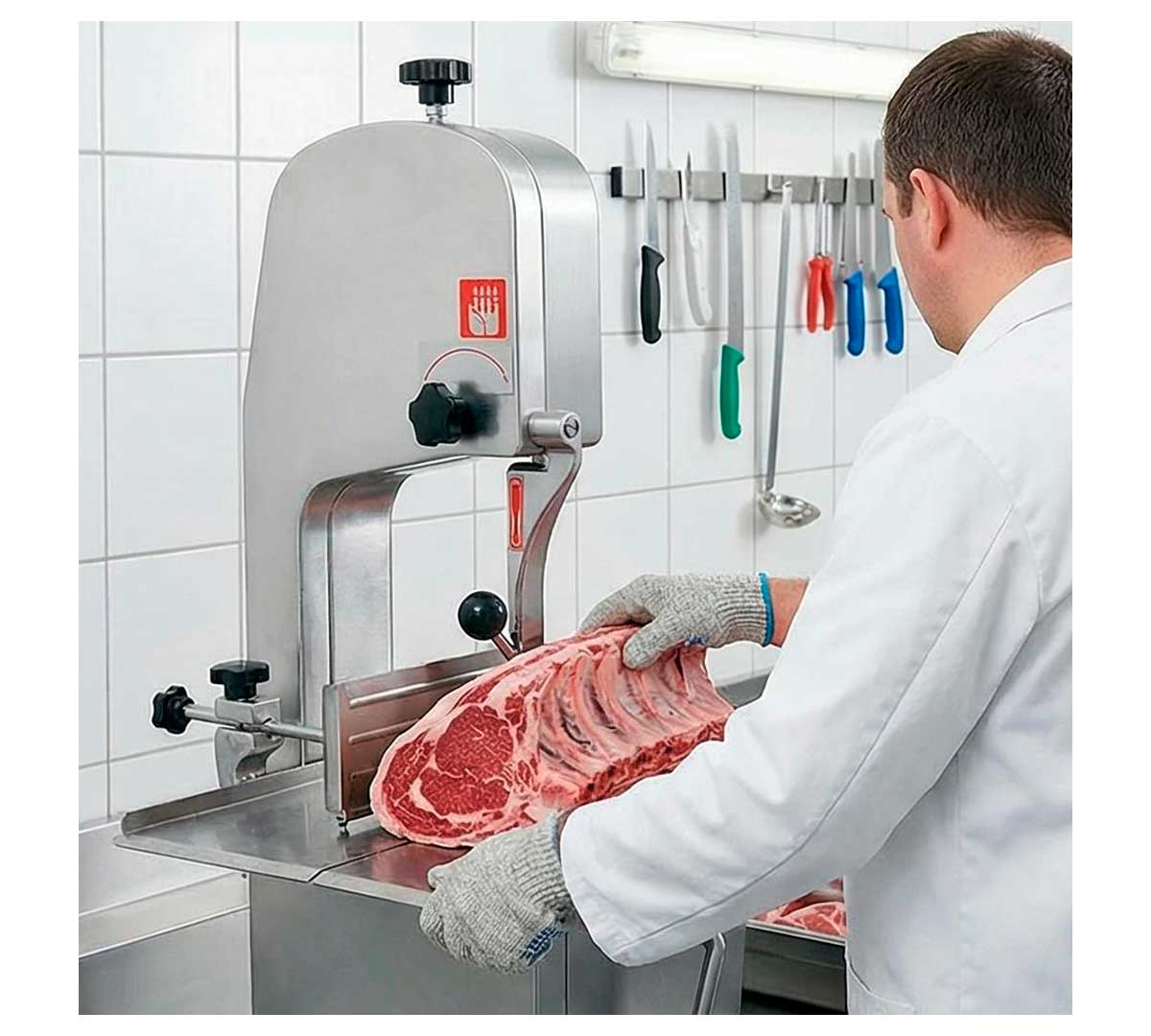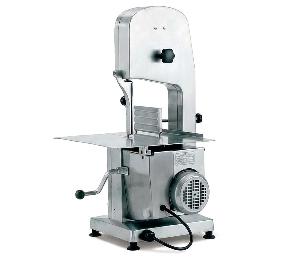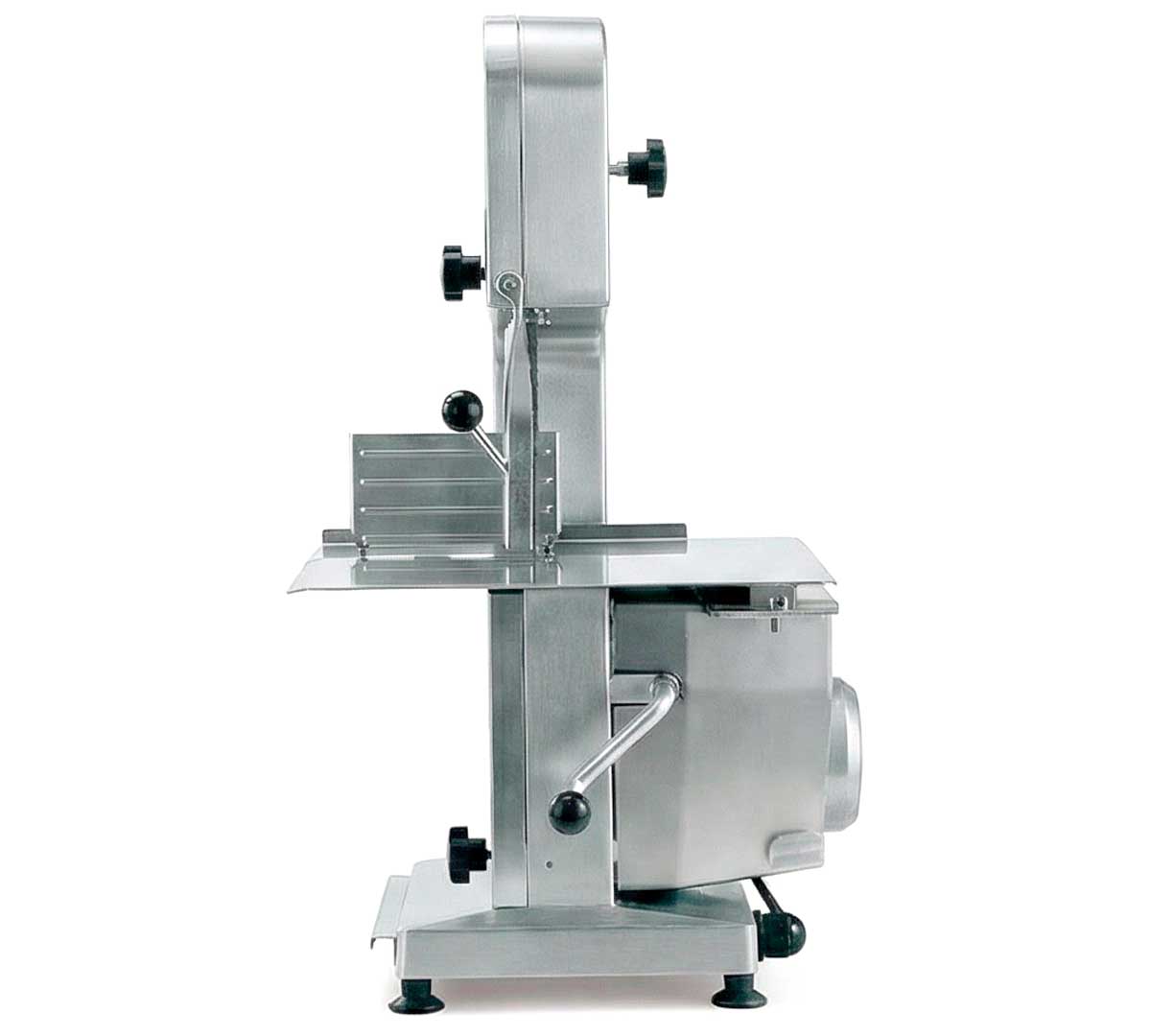 Sierra para carne y huesos de uso profesional en carnicerías y restaurantes. Permite procesar sin esfuerzo huesos, alimentos frescos o congelados. De diseño compacto para usar sobre la encimera o mesa de trabajo.