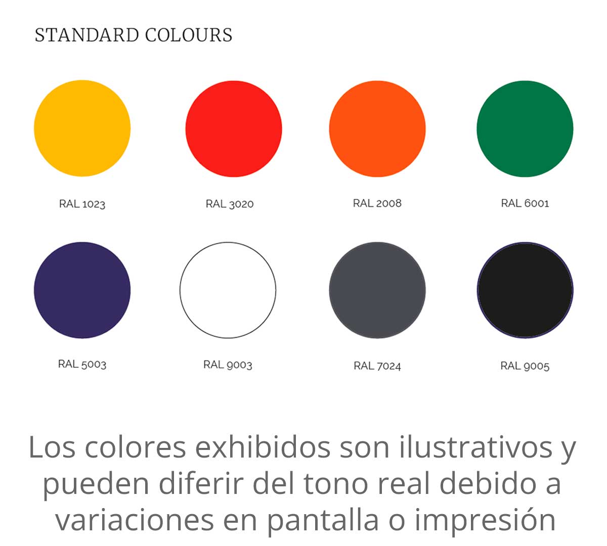 Los colores exhibidos son ilustrativos y pueden diferir del tono real debido a variaciones en pantalla o impresión.