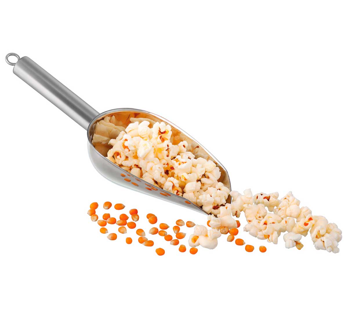 Esta Pala para Alimentos es un modelo profesional fabricado en acero inoxidable, apta para lavavajillas y diseñada para porcionar palomitas y productos secos de forma limpia y eficiente.