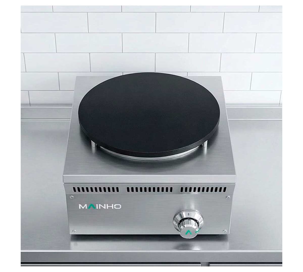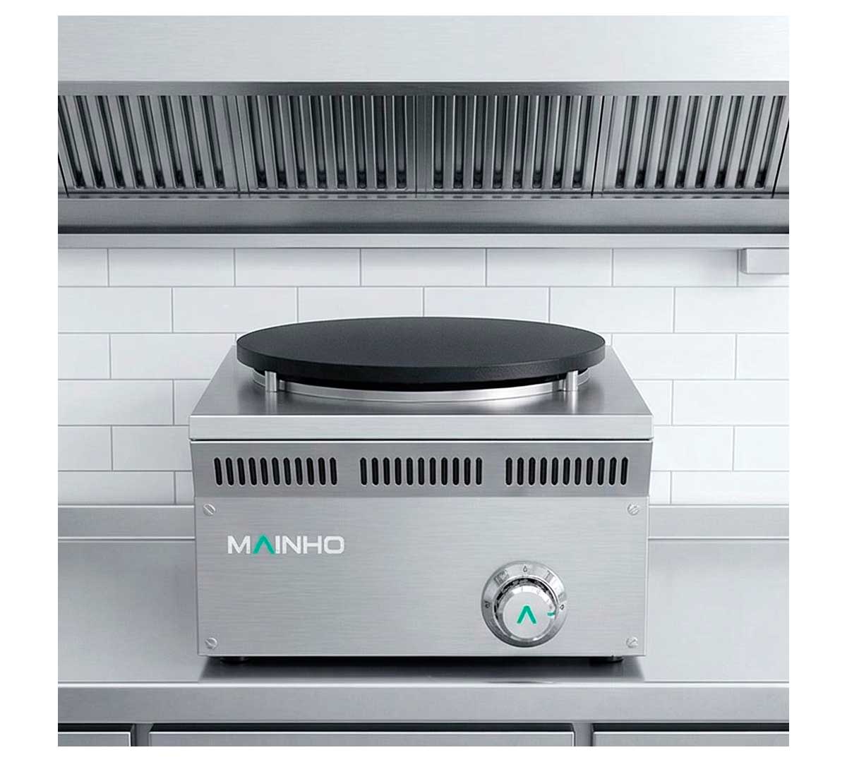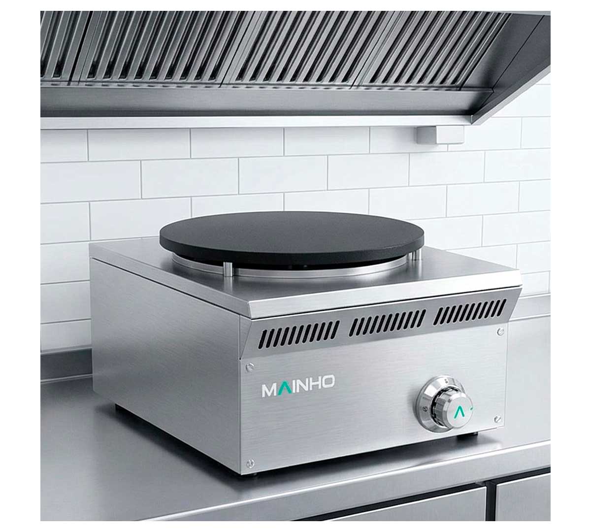 La Crepera Eléctrica Simple ELC-41G de Mainho es una solución eficiente y robusta para la elaboración de crepes en entornos exigentes. Esta crepera eléctrica, también conocida como máquina para crepes o plancha para crepes, destaca por su diseño compacto y su excelente rendimiento térmico, permitiendo obtener resultados homogéneos y profesionales en cada uso.