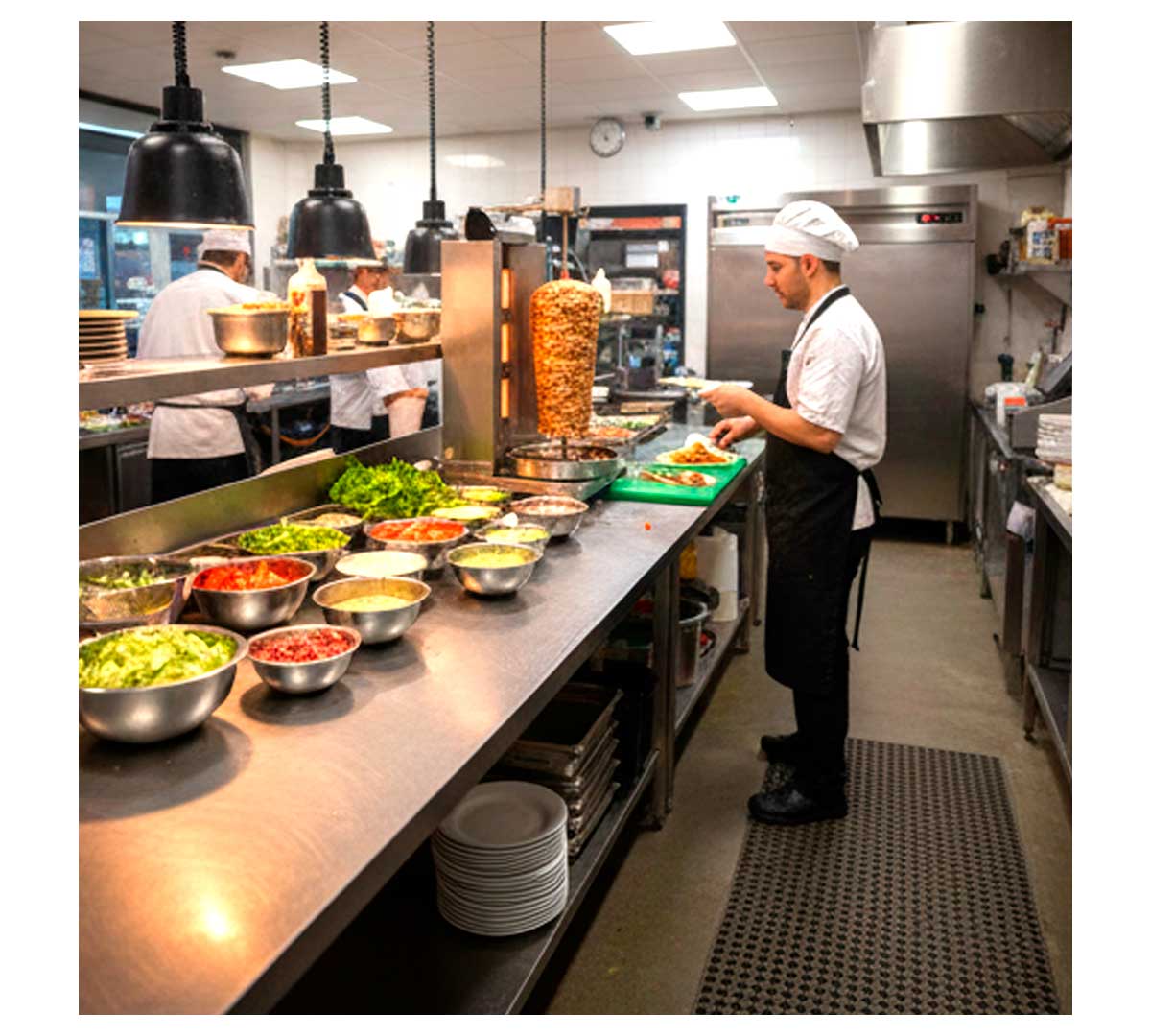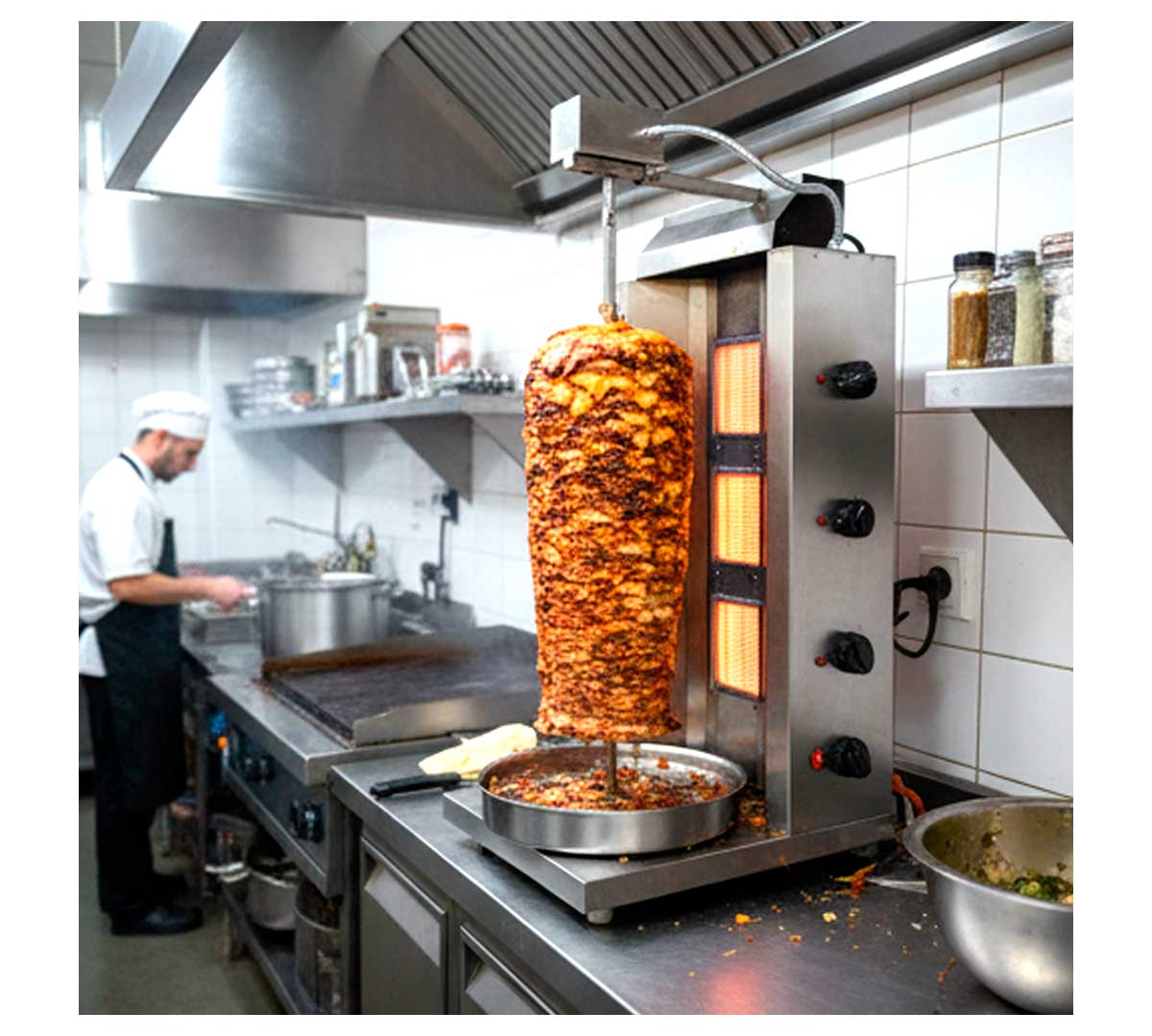 Indicado para restaurantes kebab, locales de comida rápida, food trucks y cocinas profesionales que necesiten producción continua de carne asada. También válido para catering especializado en cocina mediterránea o de Oriente Medio.