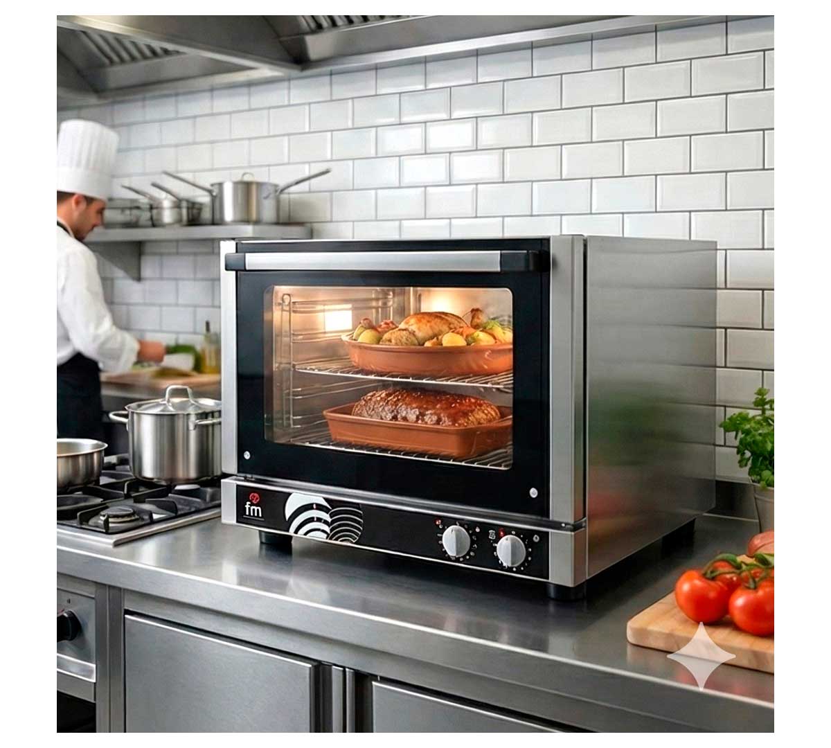 El Horno de Convección RX 604 de FM es Ideal para hornear pan precocido y bollería. Con capacidad para 4 bandejas de 60 x 40 cm o GN 1/1.