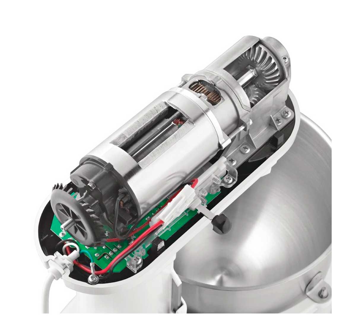 Mezcla grandes cantidades con potencia y precisión. Motor eficiente, cuerpo metálico, accesorios de acero inoxidable y sistema de elevación de cuba para un uso intensivo y seguro. Disponible en color blanco o rojo.