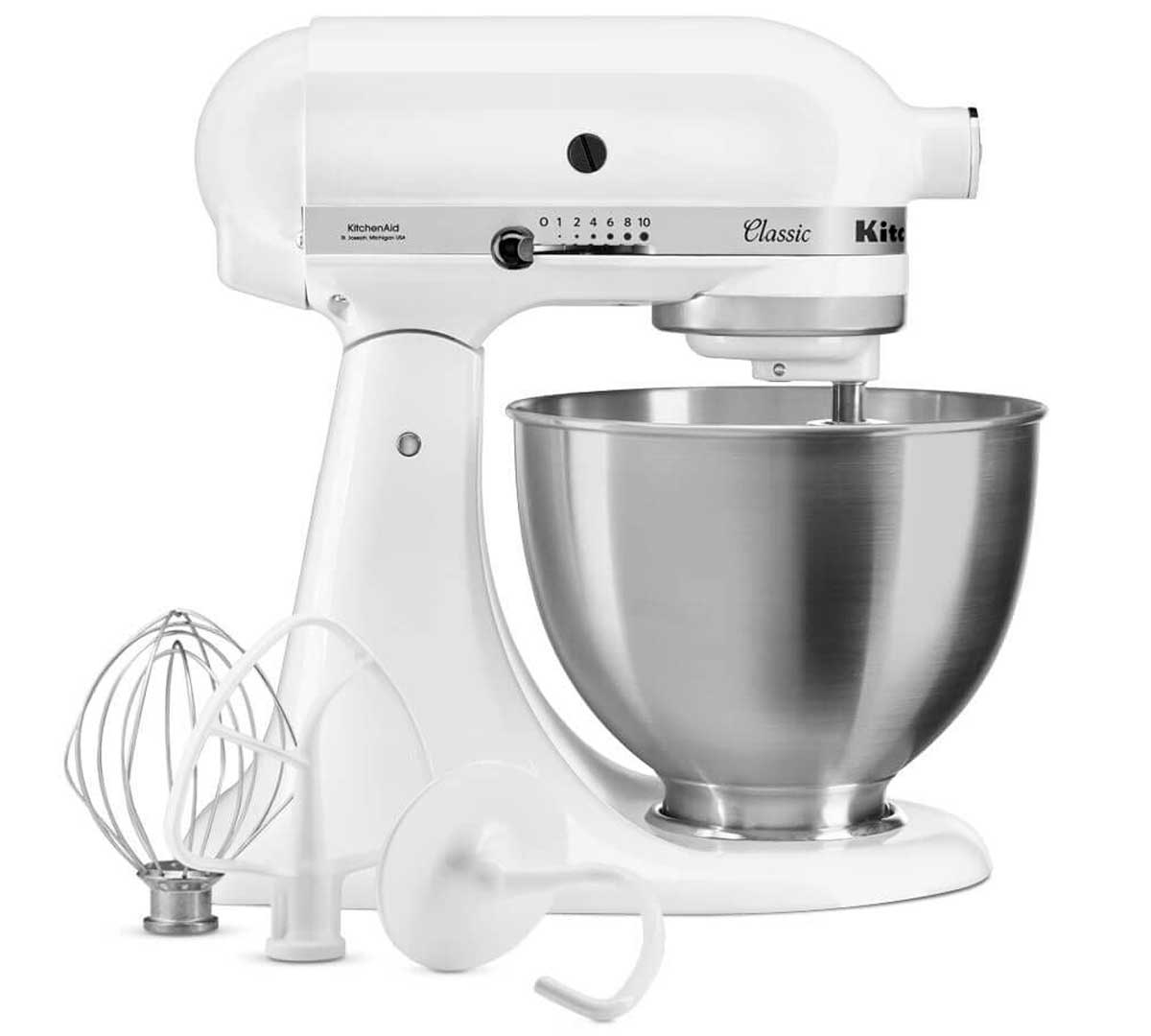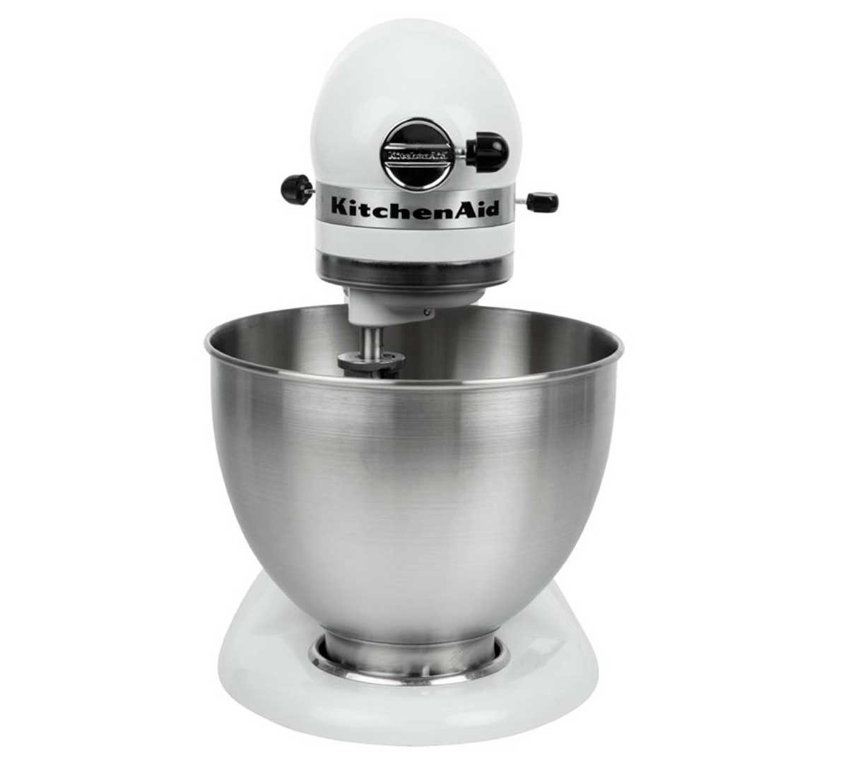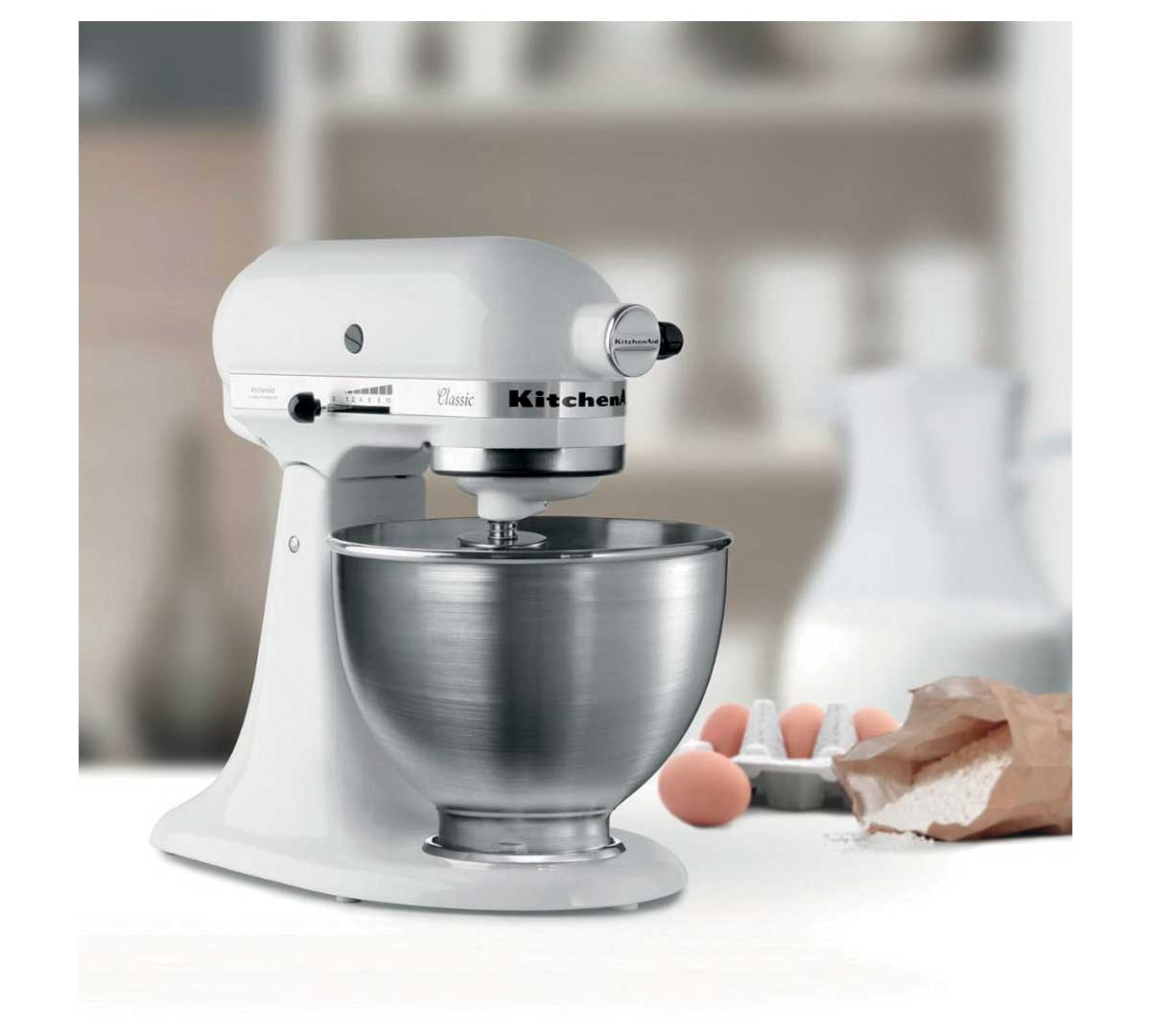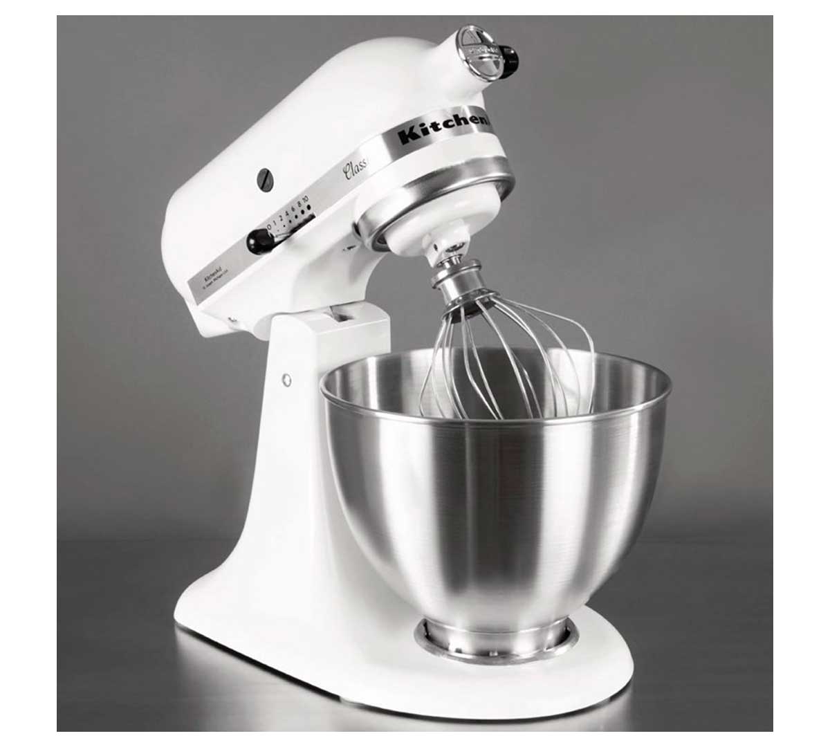 Robot de cocina con control de velocidad. Bol de acero inoxidable, batidor de varillas, gancho amasador y accesorios intercambiables. Fácil limpieza y ajuste de altura del batidor.